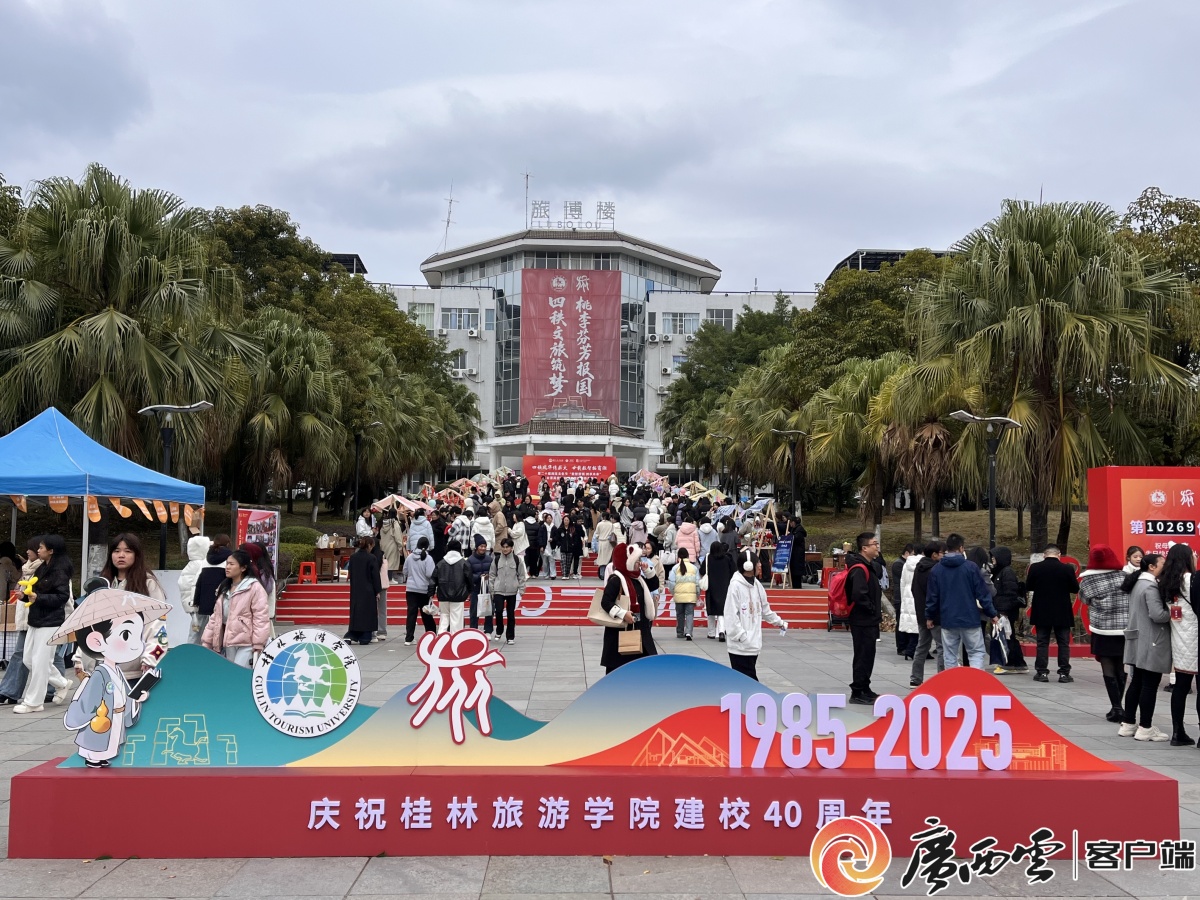 活动现场。 自1985年成立以来,桂林旅游学院经历了多个重要发展阶段。1985年11月,自治区政府批准成立桂林旅游专科学校,创业之旅正式启程;1986年,迎来首批40名翻译导游专业学生;1994年,更名为桂林旅游高等专科学校;2015年,升格为普通本科高等学校;2021年,成为文化和旅游部与自治区政府共建高校。 四十年来,学校为文旅产业输送了数万名应用型文旅人才,逐步发展成为中国旅游高等教育的“主力军”、广西文旅强区建设的“生力军”、广西高校国际旅游教育合作的“排头兵”、中国—东盟旅游教育合作的“领头雁”。