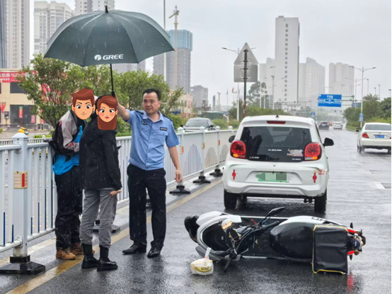 9月25日,港北区荷城路西段大雨滂沱,路面湿滑、视线模糊。港北分局经侦大队民警黄晓波在执行公务途中,突然发现前方发生一起交通事故——一辆电动自行车与小型新能源汽车发生碰撞,电动车驾驶人摔倒在地,物品散落一地。 当时车流密集、雨势正猛,多停留一秒就多一分危险。黄晓波毫不犹豫,迅速安全停车、上前查看。他细心询问伤情,确认当事人意识清醒、仅受擦伤后,便一直半蹲在地,为其撑伞挡雨,并不断安抚情绪。随后,他转身投入交通疏导,指挥车辆有序通行,有效防范二次事故。 “雨大路滑,我心里急着送单,没想到出了意外,多亏民警第一时间帮我!”事后,获助群众连声感谢。一把伞,一个人,一场及时雨中的守护,让冰冷雨幕透出暖意。 深夜寻亲:民辅警点亮“归家灯”,风雨夜里守护团圆时刻