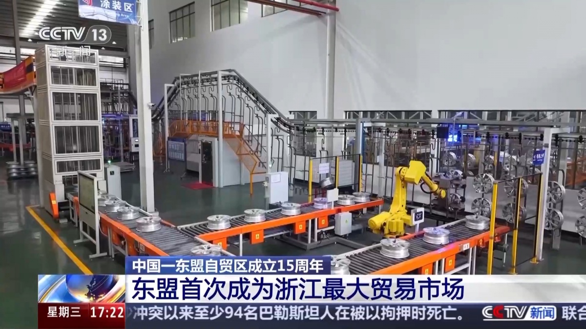 2026年将迎来中国—东盟全面战略伙伴关系建立5周年。从本月16日至19日,中国—东盟中心与福建省共同主办了“2025中国—东盟周”。中国与东盟连续5年互为第一大贸易伙伴,经贸往来蓬勃发展。 在外部不确定性增多、国际经贸秩序面临严峻挑战的背景下,中国东盟双边贸易逆势而上,彰显强劲韧性和活力。据中国海关统计,2024年,中国东盟货物贸易总值为9821亿美元,规模创历史新高,较2002年中国—东盟开启自贸区建设进程时增长了16.9倍。2022年以来,中国东盟进出口保持稳中向好态势,进出口规模连续3年保持在9000亿美元以上。2025年前10个月,中国东盟贸易总值达8627亿美元,同比增长8.2%,彰显出双方经贸合作巨大潜力。 东盟首次成为浙江最大贸易市场 今年是中国—东盟自贸区成立15周年,在关税减免与贸易便利化政策的推动下,中国与东盟产业互补优势充分释放,形成了深度嵌入的分工协作体系。以我国外贸大省浙江为例,今年前10个月,东盟首次超过欧盟成为浙江最大的贸易市场。 据杭州海关统计,今年前10个月,浙江省对东盟货物贸易进出口7106.1亿元,同比增长16.2%,东盟首次超越欧盟,跃升为浙江第一大贸易市场。