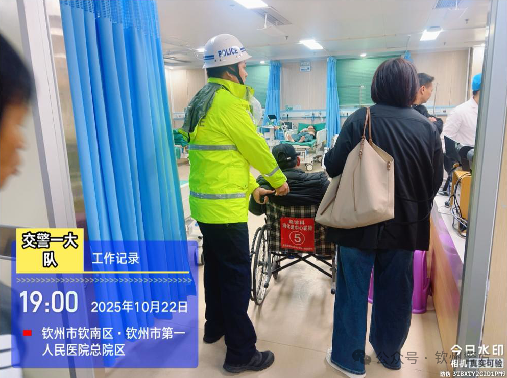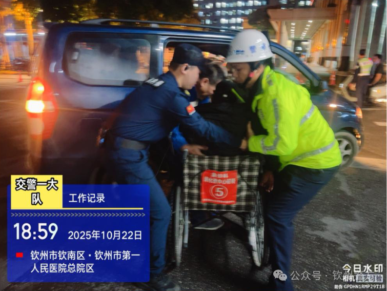 晚高峰默契联动,为急救老人开辟救助通道 10月23日18点40分晚高峰,钦州一桥车流如织,南珠东大转盘信用大厦附近,一辆面包车突然停下,驾驶员焦急地向执勤辅警龙拔辉求助。