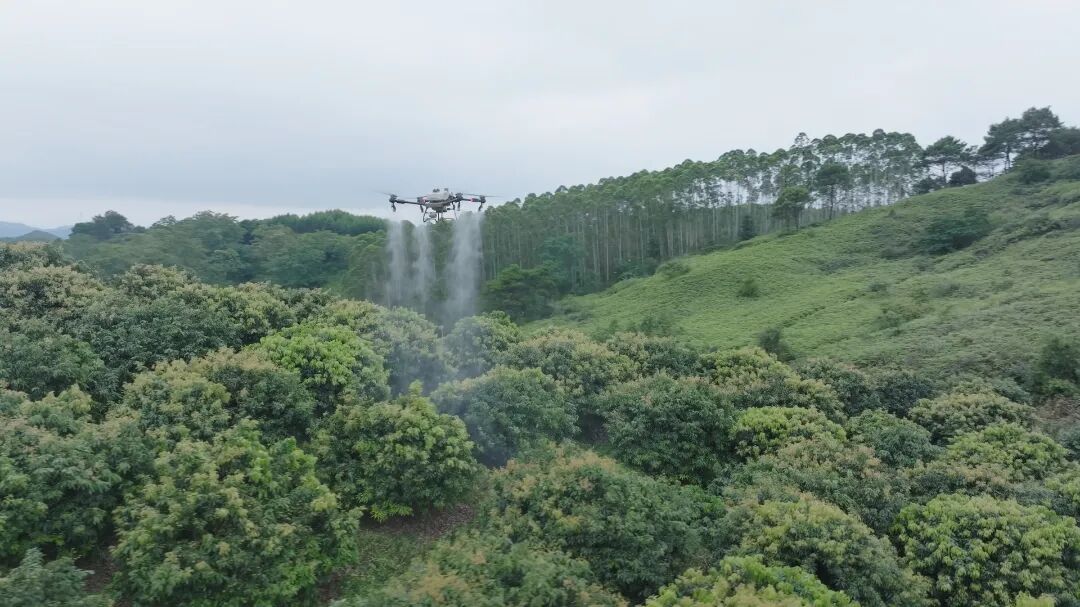 走进广西钦州市灵山县新圩镇凤凰果场,黑色无人机像侦察兵嗡嗡升空,用高清镜头把叶片上的病斑看得明明白白。果园里的“黑科技军团”——土壤水分仪、气象监测仪等设备化身24小时“哨兵”,实时采集土壤酸碱度、湿度、肥力及光照等数据。