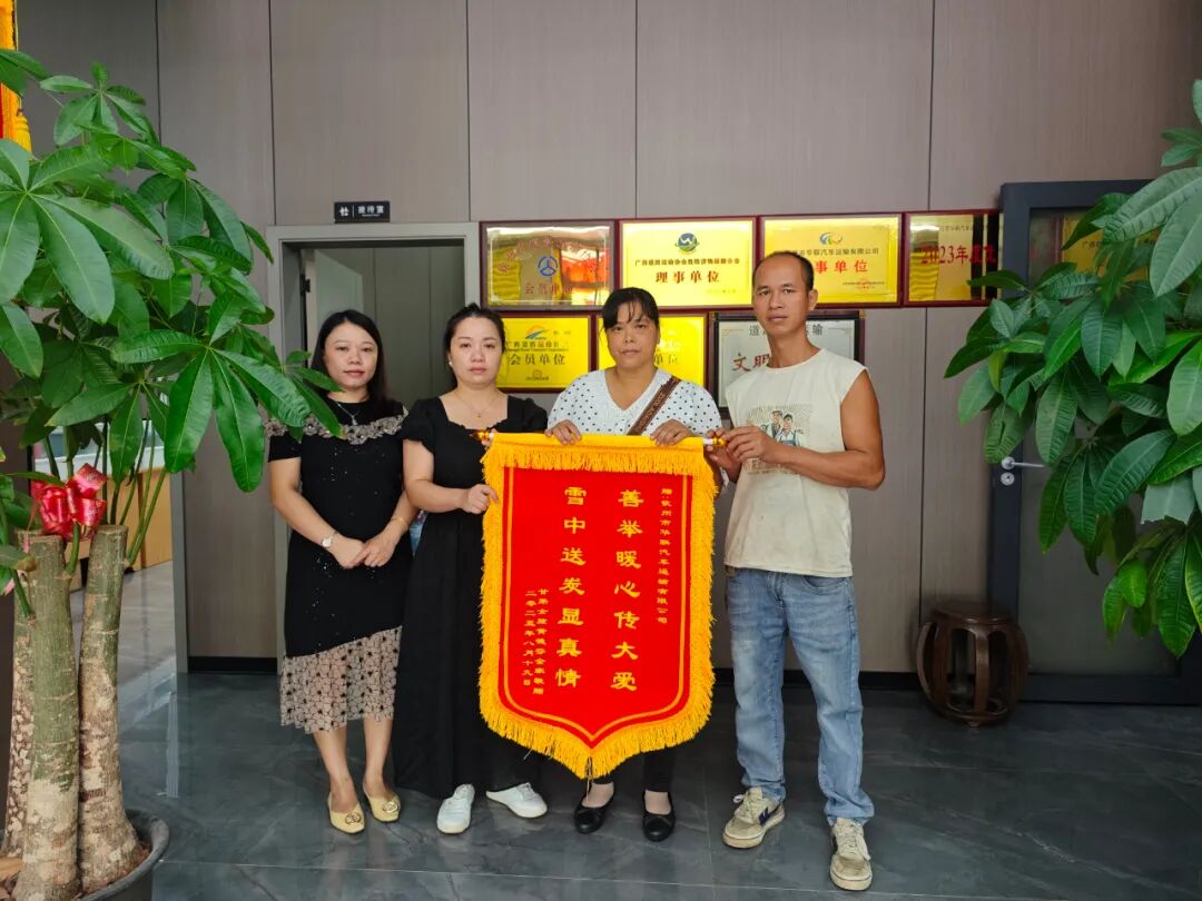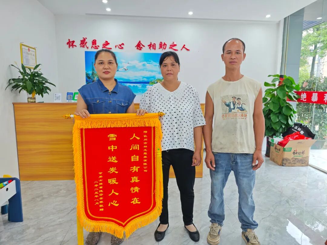 一面锦旗,承载深情。一份善举,温暖人心。8月25日,“甘蔗女孩”黄德芬的父母从灵山县太平镇赶赴钦州市区,手捧写有“人间自有真情在,雪中送炭暖人心”“善举暖心传大爱,雪中送炭显真情”的两面锦旗,分别送到钦州市祥龙服装有限公司与钦州市华联汽车运输有限公司,以最质朴的方式,向两家企业此前对儿子黄开佑的帮助表达由衷感谢。