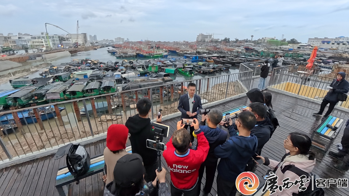 讲解员生动讲述疍家文化,采访团成员用手机定格精彩瞬间。记者 宾士雄 摄 “明年你们再来,渔港将是另外一个样子!”侨港镇党委书记梁锋介绍,经过40余年发展,侨港镇已跻身全国渔业重镇和旅游名镇之列,今年以来,侨港镇接待游客量突破1200万人次。目前,电建渔港码头改造工程正稳步推进,建成后将形成集装卸仓储、冷链加工、渔业贸易、物流配送及海鲜餐饮于一体的智慧码头。未来,该镇将瞄准百亿级农文旅产业强镇目标,打造广西最大的海产品集散基地。