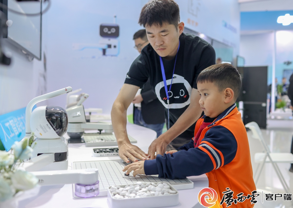 孩子与机器人下围棋。记者 凌聪 通讯员 梁力升 摄