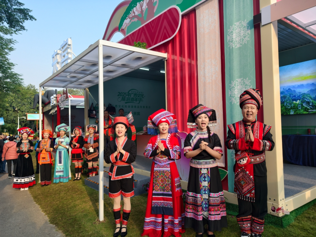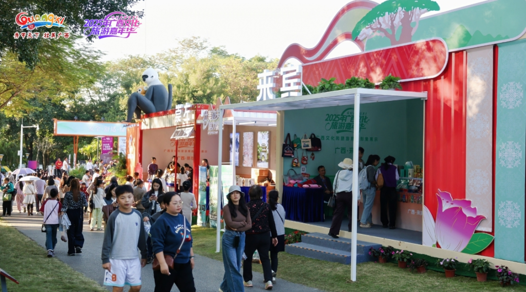 在广西文化和旅游精品形象展示区,来宾市展台喜迎宾朋。 据了解,大会同期举办广西文化旅游嘉年华等活动,来宾市通过“展示+推介+表演”的多元形式,全面打响文旅品牌。相关负责人表示,希望借助大会平台,让更多人走进来宾、了解来宾,感受壮瑶文化的深厚底蕴与生态旅游的独特魅力。 |
