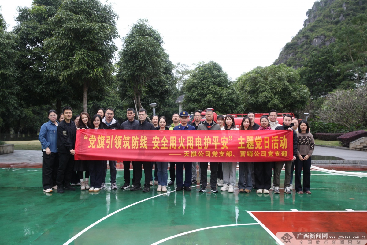 广西新闻网南宁12月5日讯(通讯员 粟世阁)近日,广西交投房地产营销有限公司党支部联合广西天祺投资有限公司党支部,在南宁花花大世界景区创新开展“党旗引领筑防线 安全用火用电护平安”主题党日活动。本次活动以“党建引领、文旅融合、安全筑基”为主线,将党组织政治优势贯穿于安全实践与文旅服务全过程,推动“党建+文旅+安全”深度融合走深走实。