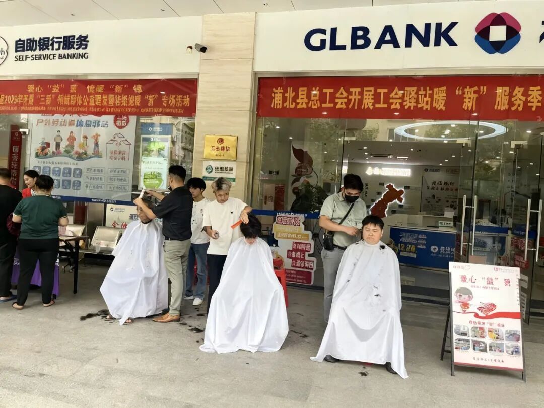 近日,广西钦州市浦北县总工会联合浦北县耕心社会工作服务中心,在桂林银行钦州浦北支行工会驿站开展新就业形态劳动者公益服务活动,为环卫工人、快递员、外卖配送员等新就业形态劳动者提供爱心义剪服务。