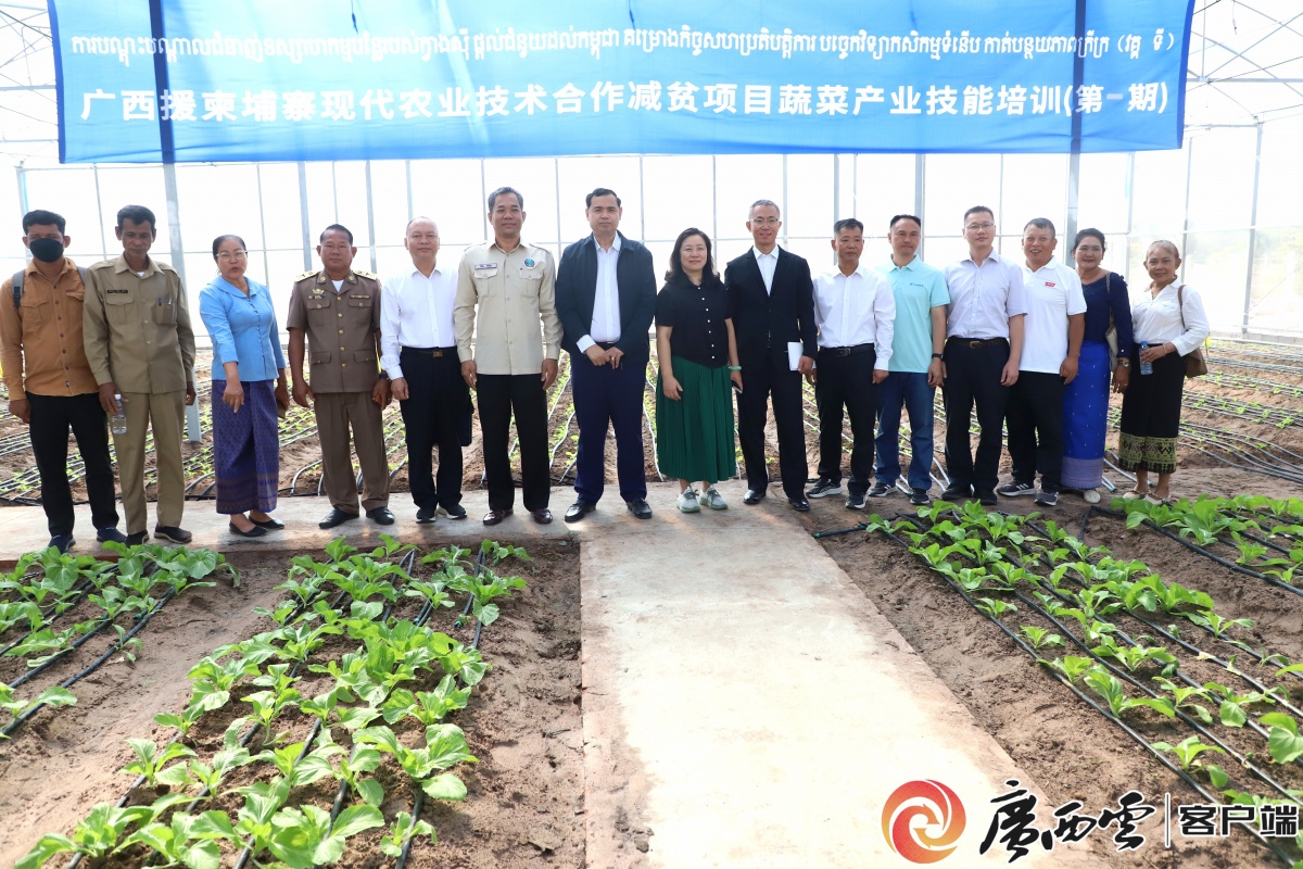 12月10日,广西援柬埔寨现代农业技术合作减贫项目智慧蔬菜大棚及其附属设施移交仪式,在柬埔寨磅清扬省罗列巴尔县乌塔赛村举行,中国驻柬埔寨大使馆经济商务参赞处代表魏梁、柬埔寨农林渔业部部长助理、国际合作司司长普鲁姆·索玛尼、磅清扬省农林渔业厅厅长宁·洪等嘉宾应邀参加仪式并致辞。