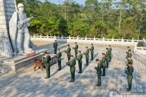 在庄严的革命烈士纪念碑前,全体官兵整齐列队、静默肃立,通过集体默哀、敬献鲜花等方式,深切缅怀战争中为民族解放英勇献身的革命先烈。