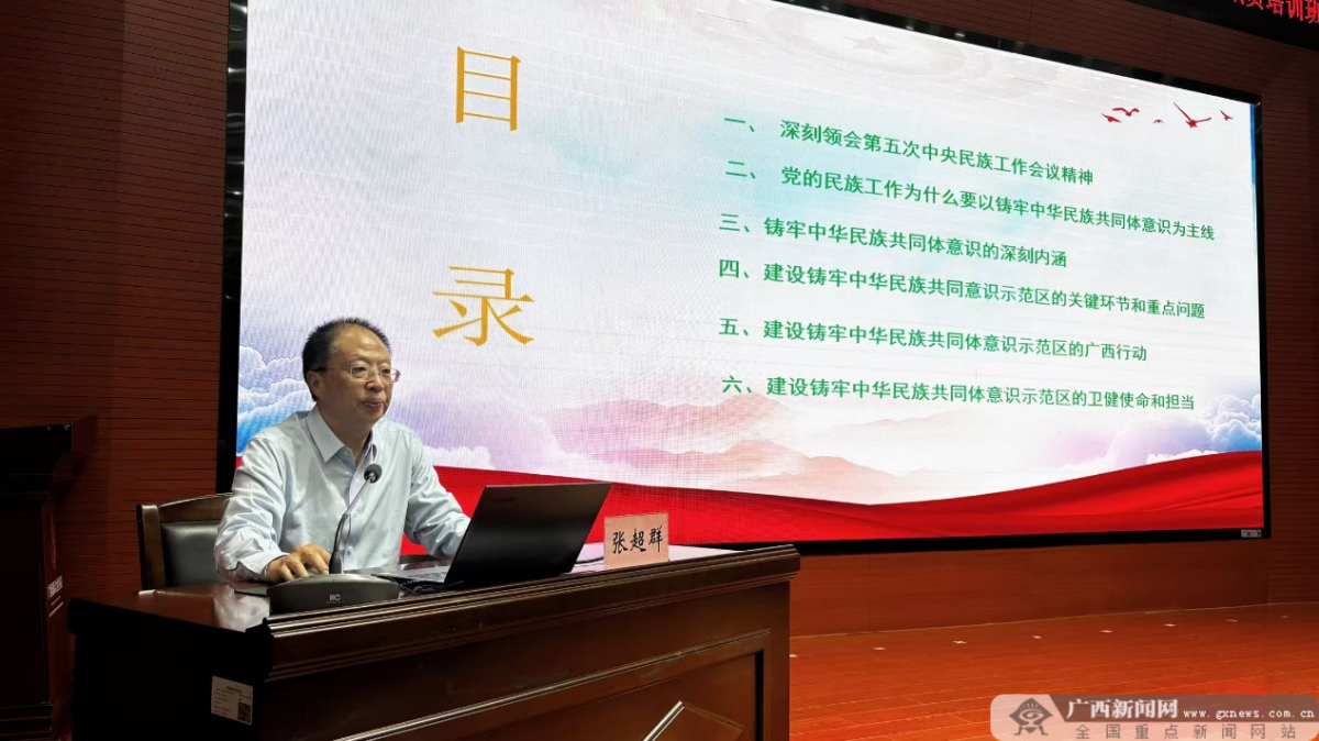 活动现场。通讯员 陈晋韬 摄 广西新闻网南宁12月23日讯(通讯员 陈晋韬)12月19日,广西国际壮医医院举办铸牢中华民族共同体意识专题讲座。讲座邀请了自治区政协委员、自治区卫生健康宣教中心副主任张超群主讲。医院党委副书记吴光主持讲座。 张超群以《铸牢中华民族共同体意识 守护人民平安健康》为题,系统解读中央民族工作会议精神的核心要义,深入阐释了以铸牢中华民族共同体意识为主线的时代背景、核心内涵与实践要求,重点讲述了广西在建设铸牢中华民族共同体意识示范区方面的行动,以及卫生健康系统在其中应承担的使命与担当。授课结合医院实际,强调要将铸牢中华民族共同体意识融入医疗服务的全过程,贯穿到规范诊疗、优质服务、协同协作等每一个工作环节,充分发挥壮瑶医药特色优势,以专业的医疗技术和有温度的服务,守护广西各族群众的生命健康,切实为推动区域卫生健康事业高质量发展、增进民族团结进步贡献力量。 本次专题讲座不仅加深了全院干部职工对铸牢中华民族共同体意识重要性的认识,更为医院今后进一步将民族工作与医疗服务工作深度融合指明了方向。大家纷纷表示,将以此次讲座为契机,把学习成果转化为服务各族群众的实际行动,用实际行动践行医者初心使命,守护广西各族群众健康。 近年来,广西国际壮医医院将铸牢中华民族共同体意识贯穿医疗、教学、科研、管理全过程,形成了“党建引领强根基,民族医药促融合,国际交流扩影响,共建共享惠民生”的创建格局。医院被命名为第六批“自治区民族团结进步示范区示范单位”,1人获“自治区民族团结进步模范个人”称号。 |
