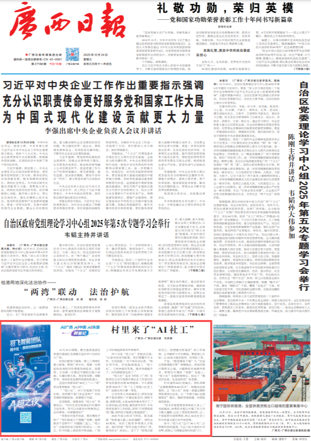 12月22日傍晚,霞光温柔地洒在贵港市港南区东津镇石连村冲口屯的村头广场。 村民们刚放下碗筷,便三三两两扛着小板凳,聚到广场中央,围着一台架起的电视机叽叽喳喳热闹起来。屏幕里,正站着一位憨态可掬的壮族小姑娘:头戴壮锦头饰,身穿荷花裙,眉眼带笑,身体却是充满科技感的机器人。 摄制:卢业深 素材来源(部分):羽飞科技(广西)有限责任公司 这是村里新来的“AI社工”——“荷”您议事智能体“桂小社”。 “‘桂小社’,村口空地堆了好些垃圾,该找哪个部门来运走哟?”村民李婶挤到最前面,亮着嗓子问道。 话音刚落,屏幕里的“桂小社”笑着回应:“村内生活垃圾清运归乡镇环卫站负责,你可以先联系村'两委'登记,由村委统一对接镇里哈!” “我想在村里开民宿,要办哪些手续?”“我们姐妹几个想跳广场舞,能帮联系个老师不?”问题接二连三,“桂小社”总能用活泼又接地气的语言一一回应,时不时配上俏皮的手势动画,广场上不时响起阵阵笑声和掌声。 冲口屯是“桂小社”首批试点地。“以前村民来问政策,我们得翻半天文件,生怕说错。”村干部告诉记者,“现在用手机、旧电脑就能连上‘桂小社’,几秒钟就有答案,服务效能提升了,村民满意度也高了。” “桂小社”是羽飞科技(广西)有限责任公司与贵港市委社会工作部合作研发的基层治理AI智能体,不久前刚获得2025年广西“人工智能+社会工作”创新应用大赛一等奖。 公司负责人刘成城坦言,研发初衷源于基层调研:“乡镇设备老旧、网络不稳、预算有限,主流AI软件根本用不了。”出身河池山区的他,兼具清华学历、中央智库及海外工作经验,深知“只有降低使用门槛,高科技才能真正落地基层”。 2025年成立的羽飞科技,取名寓意“给普通人插上AI的翅膀”。团队由AI架构、知识工程等多领域人才组成,他们怀揣“把专业能力带回广西、服务民生”的初心,定下了“把难点留给自己,把便捷交给基层”的工作准则。公司摒弃大平台路线,聚焦核心目标:让AI成为基层能用、好用的工具。 于是,“极简瘦客户端”与“自适应资源调度引擎”相继推出,将高负载计算转至云端,大幅降低本地硬件要求。即便在乡镇的“高龄”电脑上,“桂小社”也能秒级响应,验证了“激活旧设备,也是高科技”的思路。 针对通用AI幻觉痛点,团队深耕“全链路溯源RAG技术”,构建动态政策库,让“桂小社”的每一条建议都附带政策原文出处,以“外接大脑+证据链锁定”模式,确保答案准确、经得起规范检验。 “技术价值要落到具体的人身上。”刘成城说,如果技术能让乡镇工作人员少跑几趟路、让社工更快找到材料、让一个家庭更早获得帮助,那么AI在社会工作中的意义就已经开始显现。 如今,“桂小社”这只“AI小鸟”,正带着科技的温度,飞过八桂大地的乡村田野,把贴心与便捷送到村民家门口。