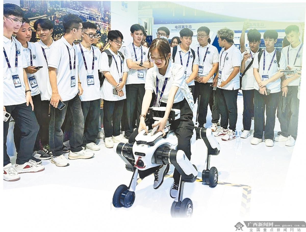 留学生走进第22届中国—东盟博览会,体验人工智能创新应用。广西大学供图 服务大局 高等教育要扩容,更要提质 高等教育是科技第一生产力、人才第一资源、创新第一动力的重要结合点。回顾过去五年,广西高等教育的最显著特征是“扩容”与“提质”并重。 “广西学子进入优质高校的机会越来越多。”自治区教育厅高等教育处处长李辉善用一组数据佐证了这一变化:2025年全区普通本专科在校生达151.5万人,比2020年增长27.9%,其中本科在校生73.5万人,比2020年增长31.3%;研究生在校生7.5万人,比2020年增长61%。 然而,规模的扩张仅仅是基础。对于高校而言,如何走出象牙塔,将论文写在祖国大地上,将科研成果转化为现实生产力,才是检验高质量发展的关键标尺。李辉善对此有着深刻的理解,他直言:“高校要推进科研成果从‘书架’走上‘货架’。” “十四五”以来,我区高校在生物造纸技术、甘蔗基因组研究、药用资源综合利用开发、皮肤真菌病综合防治等领域牵头承担多个国家重点研发计划项目,其中,广西大学在大跨拱桥建造技术、甘蔗育种等领域已达到世界先进水平。 李辉善介绍,为了打通转化的“最后一公里”,广西高校承担了横向科研项目1.2万项,项目经费达18.5亿元,其中签订技术转让合同2500项,合同金额超过2亿元。 这一从“书架”到“货架”的深刻变革,得益于学科专业结构的深度调整。李辉善透露,广西“一校一策”推动高校调整优化学科专业结构,紧密对接广西主导优势产业和战略性新兴产业。他特别提到,全区已累计投入4.68亿元支持建设50个现代产业学院,其中广西科技大学的智能车辆(制造)与新能源汽车产业学院入选全国首批现代产业学院。