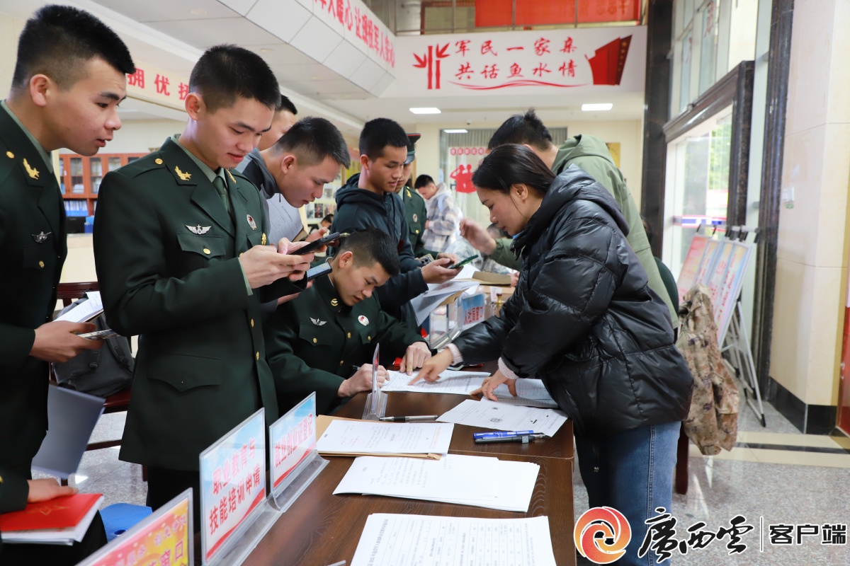 钦州市灵山县退役军人事务局工作人员在一站式接兵工作中,为退役士兵提供指导服务。通讯员 陈榕榕 摄 就业是老兵退役后融入社会的关键,也是实现高质量发展的重要支撑。广西出台《促进退役军人高质量充分就业实施方案》,构建多部门联动的就业服务体系,全年举办260余场招聘会,提供27.3万个就业岗位,覆盖智能制造、跨境电商、基层治理、乡村振兴等领域,创新推出的AI助手“桂小兵”,实现政策咨询、岗位匹配一键直达,突破时空限制,提升就业服务效率。 创业路上,广西为老兵保驾护航。建成全国首个退役军人资源交易服务平台,开展退役军人经营主体培育服务系列活动,全年服务军创企业2450余家;创业贷政策发力,累计向2463家退役军人市场经营主体投放融资贷款21.26亿元,有效缓解了军创企业融资难、融资贵的问题。目前,全区退役军人经营主体超10万户,军创企业4.3万家。此外,广西还积极拓展退役军人发挥作用的新赛道,北海退役军人国防教育辅导员进校园试点成效显著,带动全区61所中小学校推广;8581名退役军人纳入村级后备人才库,成为基层建设生力军。广西还发布了全国首个民族地区自主就业退役军人适应性培训标准,为退役军人顺利实现角色转型提供了科学指引。