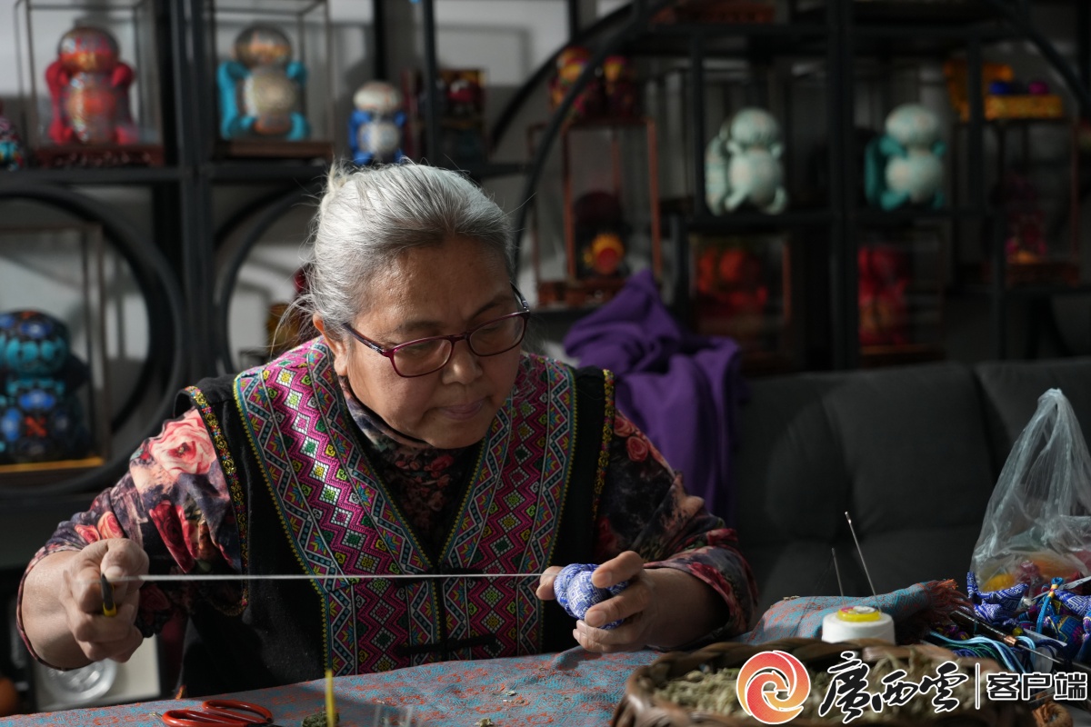 新闻眼人间烟火气,最抚凡人心。广西云-广西日报特别推出“广西烟火”专栏,记录烟火人生里平凡者的故事。此前,专栏已陆续推出“八桂夜市”“八桂圩日”“年味一道菜”3个系列,今日开始推出第四期“发现民间绝活”系列报道,带您走近广西新生代手艺人,看他们以新技法焕活老技艺,用创意点燃市场,让民间绝活破圈生长、融入日常、激活产业;邀您在烟火升腾处,共鉴技艺新生,触摸匠心温度,感受文化脉动。 视频摄制:朱鋆瑶 12月26日,冬日的右江清波微漾,澄澈天光映水,漾起淡蓝的涟漪。走进百色老乡家园麽乜作坊,一缕草木辛香扑面而来,与窗外清寒撞个满怀。一旁的竹筐里,深绿艾草叶蜷着身子;案台上,裹着五彩壮锦的麽乜,顶着圆润脑袋,或列队成行,或缀于各式文创,憨拙模样里透着灵动的喜气。 90后李樱符俯首案前,指尖拈着银针,在斑斓壮锦布上轻巧游走;身旁,母亲唐纯翠正将晒干的艾草,稳稳塞入布坯,力道沉实,仿佛把所有祈愿,压实凝入这方寸吉祥物里。同为右江区级非物质文化遗产代表性传承人,母女俩用针线与药草,共同守护着这门源自端午时节的民间绝活——右江壮族麽乜制作技艺。 “麽乜”,壮语音译,意为“神祖”。这小小的香囊,藏着一则右江流域古老传说:远古时,壮族勇士伯皇为拯救苍生,跋山涉水寻回太阳火种,终因耗尽体力倒下。族人为感念恩德,以布裹入艾叶、菖蒲、苍术等药草,制成“人抱龙珠”香囊,端午佩戴,寄寓守护与祈愿。如今,麽乜融入节庆婚嫁,承载驱邪避秽、纳吉招福之意。2012年,这项技艺入选自治区级非物质文化遗产名录,成为右江流域文化不可磨灭的印记。