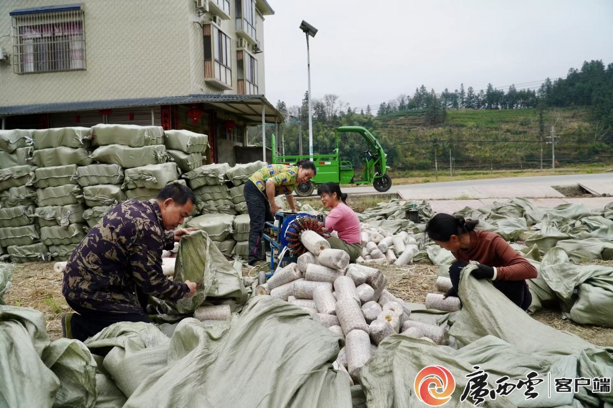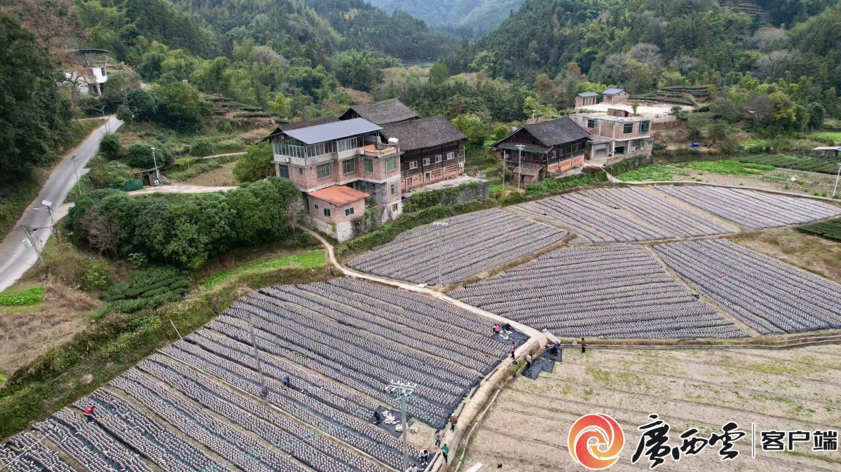 冬季,扶平村冬闲田变身木耳种植基地。陈霆威 摄 去年冬日,驻村工作队深入田间地头调研,发现利用冬闲田闲置资源与黑木耳生长特性高度契合,且能享受政府冬春种植的政策扶持。在柳工集团党委的资金与资源支持下,“党支部+后盾单位+企业+农户”的发展模式应运而生,10万棒木耳种植项目落地生根,让冬闲田变身“致富田”。