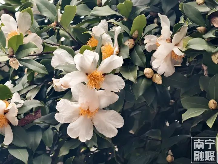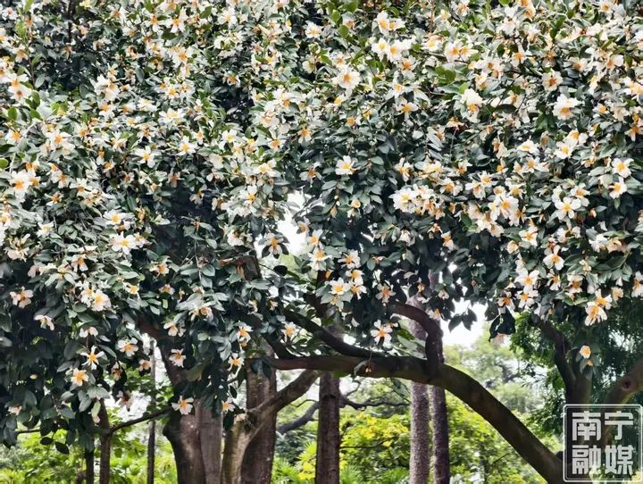 满树繁花洁白如玉 南宁人民公园油茶花冬日花开正盛 |