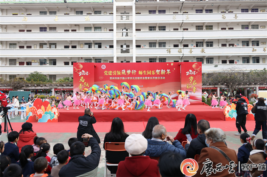 12月30日上午,贺州市八步区新宁路小学操场暖意融融、欢声阵阵,以“党建引领筑梦行,亲子同乐贺新年”为主题的元旦联欢会暨家长开放日活动在此举行。