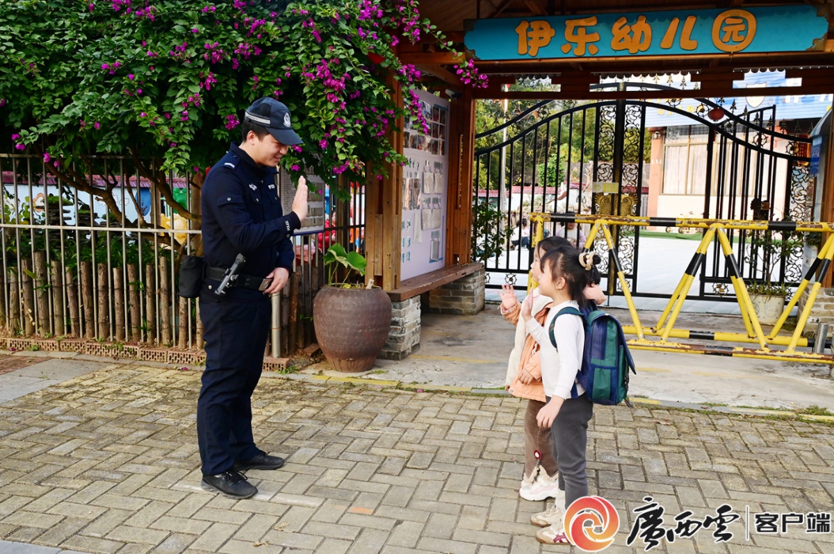 幼儿园小朋友与执勤警员打招呼。 连日来,桂林市公安局雁山分局开展常态化、持续性的护学行动,采取“定校、定点、定人、定岗”的精细化管理措施,组织警员每天清晨提前到岗,傍晚延后撤离,承担立岗警戒、秩序维护、车辆疏导、人员分流等一系列任务。 日前,距放学时间已过去40分钟,在大埠中心校护学岗执勤的辅警龚保旺发现一名小女孩站在校门口,且不停四处张望,便上前询问情况。 “警察叔叔,我妈妈还没有来接我,你能帮我打个电话吗?”原来,小女孩的妈妈临时有事耽搁,要半个小时后才能来接她。由于天色渐晚,考虑到安全因素,龚保旺在征得家长同意后,将小女孩安全护送回家。 “守护的路径从未局限于校门口。”雁山公安分局有关负责人介绍,该分局近段时间加大校园周边巡逻与监控力度,在上下学高峰期部署更多警力进行定点值守和流动巡逻,有效震慑潜在的违法犯罪。同时,定期派民警到学校开展防欺凌、防诈骗、交通安全等法治讲座、安全演练等活动,提升师生的自我保护意识和应急处理能力。 在校园内部安全方面,雁山公安分局对辖区各中小学校、幼儿园每月开展安全检查工作,组织民警严格依据校园安全防范标准,着重对校园的硬质防冲撞装置、监控和消防设施等关键部位进行全面检查。针对检查过程中发现的问题,当场提出整改意见,督促相关责任人立即整改,切实做到校园安全检查无死角、无漏洞。 |