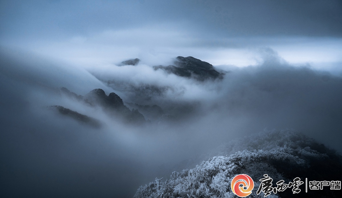 明山雪韵。何伟荣 摄 这南国雪韵的背后,藏着独特的地理气候密码。气象专家解释,经过冷却雾滴接触低温物体(如树枝)后,直接凝华(由气态水汽直接变为固态冰晶)附着在其表面,并不断积聚增长,便形成雾凇。当冷空气穿越大明山林,山间水汽在草木上积聚、凝华,终成玉树琼花,这也造就了大明山“春之花、夏之瀑、秋之云、冬之雪”四季美景中动人的一笔。