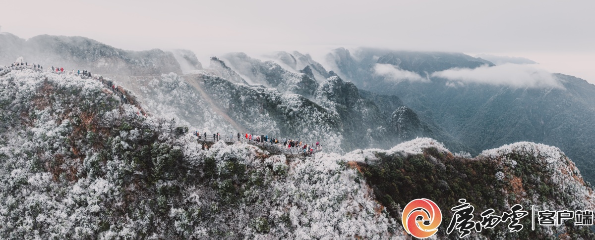 雾凇美景。大明山管理局供图 刺骨寒风挡不住游人热情,千姿百态的琼枝玉树将群山装点成梦幻国度,让每位踏足者邂逅南国冰雪奇缘。游人嬉戏的喧闹与山间静谧相映成趣,构成一幅人与自然和谐共生的冬日图景。“我很早就想来这看雾凇,今天见到了,终于在家门口圆了我的冰雪梦。”来自钦州的曹女士兴奋地说。
