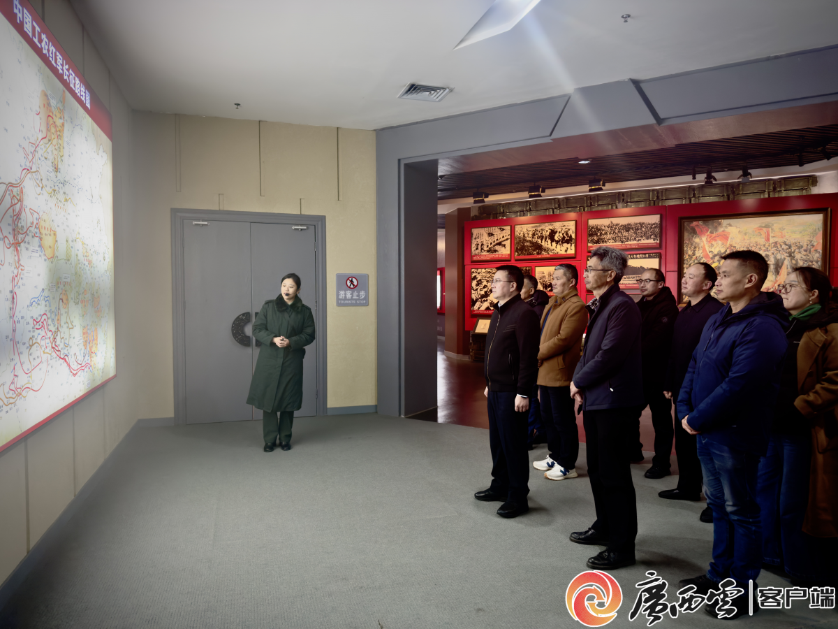 桂林市委党史研究室一行人在红军长征湘江战役纪念园参观。 在全州县召开的“赓续红色血脉 勇担职责使命”暨红色资源保护与传承座谈会上,全州、兴安、灌阳三县党史部门负责人分别汇报了本县党史工作及红色资源保护与传承等情况。与会人员围绕如何进一步深化湘江战役历史研究、推动红色资源保护与传承、创新党史宣传教育形式、做好党史短视频创作工作等议题展开了交流讨论。