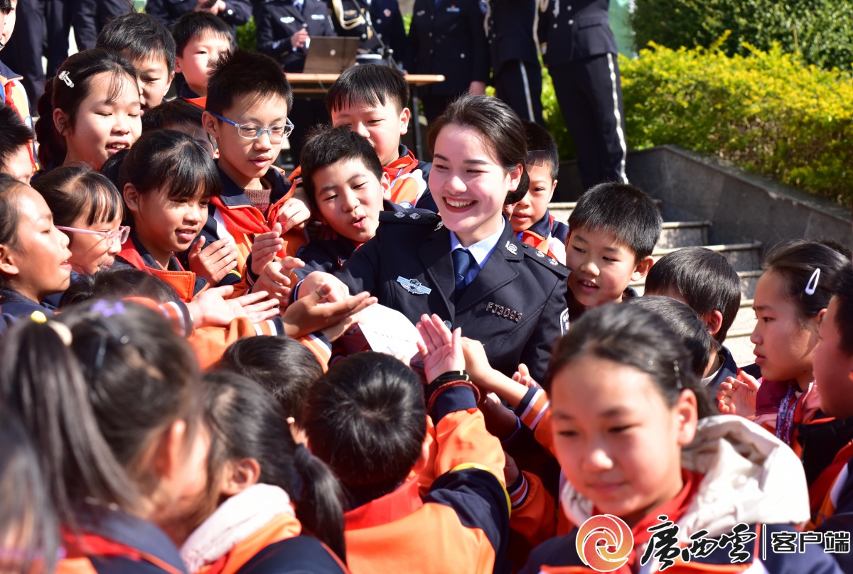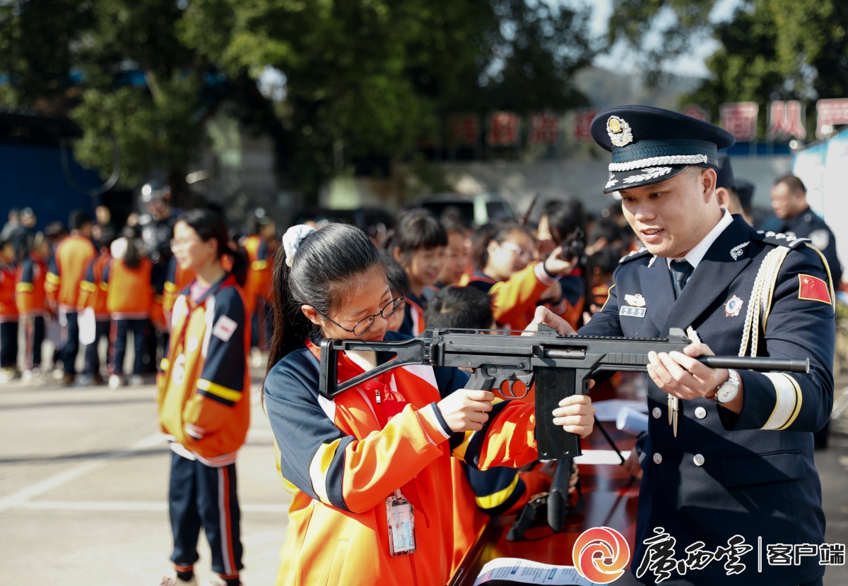 民警向学生介绍武器装备甘勇 摄 民警和学生互动 廖祖平 摄 活动现场上演了警务实战技能演练、警犬搜捕表演、警用无人机操作演示等精彩节目,同步开展禁毒与反诈知识宣讲。学生们在民警引导下,参观了由他们自己创作的警察主题书画作品展。这场生动、直观的“零距离”互动,有效增进了群众对公安工作的理解与支持,让警民关系在交流中更加贴近、愈显和谐。
