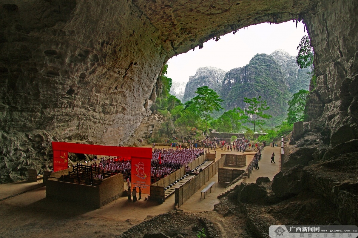 广西韦拔群干部学院。 1月3日中午,来自河池市金城江区的游客陈先生一家前来参观列宁岩:“孩子在学校看了列宁岩的图片,一直心心念念想来实地看看。没想到就是这么一座很普通的岩洞,红色革命历史却令人震撼,不虚此行。” 采访结束时,我们回望岩洞深处,看着历经百年的讲台——百年前革命先辈的呐喊,百年间参观者的脚步,百年后传承者的誓言,在这座千年岩洞里交融汇聚,凝成一首永不消逝的红色赞歌。 |
