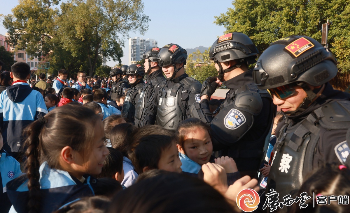 活动现场。 “注意!迅速包抄!”一声令下,几名特警队员如离弦之箭,战术动作干净利落,瞬间将“嫌疑人”控制。这不是影视片段,而是在柳城县文昌小学展示的一场处置突发事件模拟。 为迎接第六个中国人民警察节,1月8日,柳城县政府办、政法、公安、法院、消防、教育等部门将警营“搬”进校园,通过一系列可感、可触、可参与的沉浸式体验,为师生们带来一堂生动警营体验课。 警犬训练展示。 警用器械展示。 学生认真观看。 学生亲密接触警用装备。 学生亲密接触警用器械。 学生观看警犬。 学生接触警用车辆。 学生登上警用车辆。 “陌生链接能不能点?”“游戏皮肤免费送是真的吗?”“毒品有哪些种类?”,在活动现场,反诈、禁毒有奖竞答环节气氛紧张又欢乐,同学们争相举手回答。当天的警营开放日,通过应急演练、装备展示、警犬演示、互动问答等丰富形式,让学生们沉浸式体验警务工作。 现场互动问答。 现场互动问答。 安全知识宣传。 消防知识宣传。 拍照打卡。 在互动体验区,学生在民警指导下开启“警营体验之旅”。在安全区域观摩警械装备,学生们亲手触摸防暴盾牌、枪械;登上警车、警用摩托车,近距离感受警务用车;在交通宣传点,同学们在抢答后围在一起合影。 据了解,此次活动是柳城县庆祝中国人民警察节系列活动之一,也是警营开放日走进校园的第三站。活动的举办,让师生沉浸式感受警营魅力,在欢声笑语中播撒法治的种子。 |