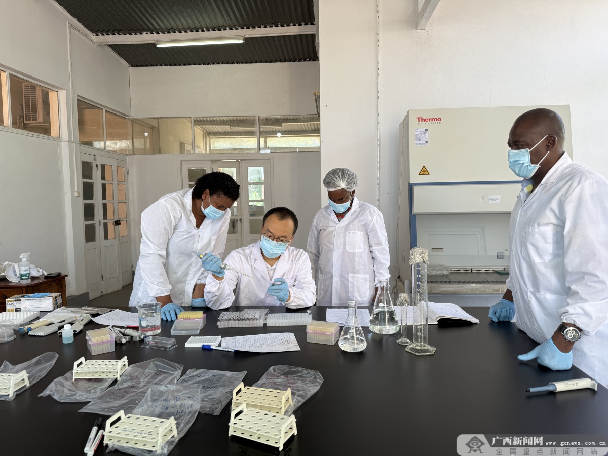 2024年12月马腾飞向减贫村农民讲解水稻种植技术。 六赴非洲:段振华用“授渔”理念培育内生动力 如果说马腾飞的工作关键词是“补链”,那么段振华的关键词则是“育人”。 十余年来,这位来自广西玉林市动物疫病预防控制中心的兽医专家六赴非洲,长期奋战在埃塞俄比亚、圣多美和普林西比等国一线,始终把“能力建设”放在首位,坚持以“授人以渔”培育当地发展内生动力。
