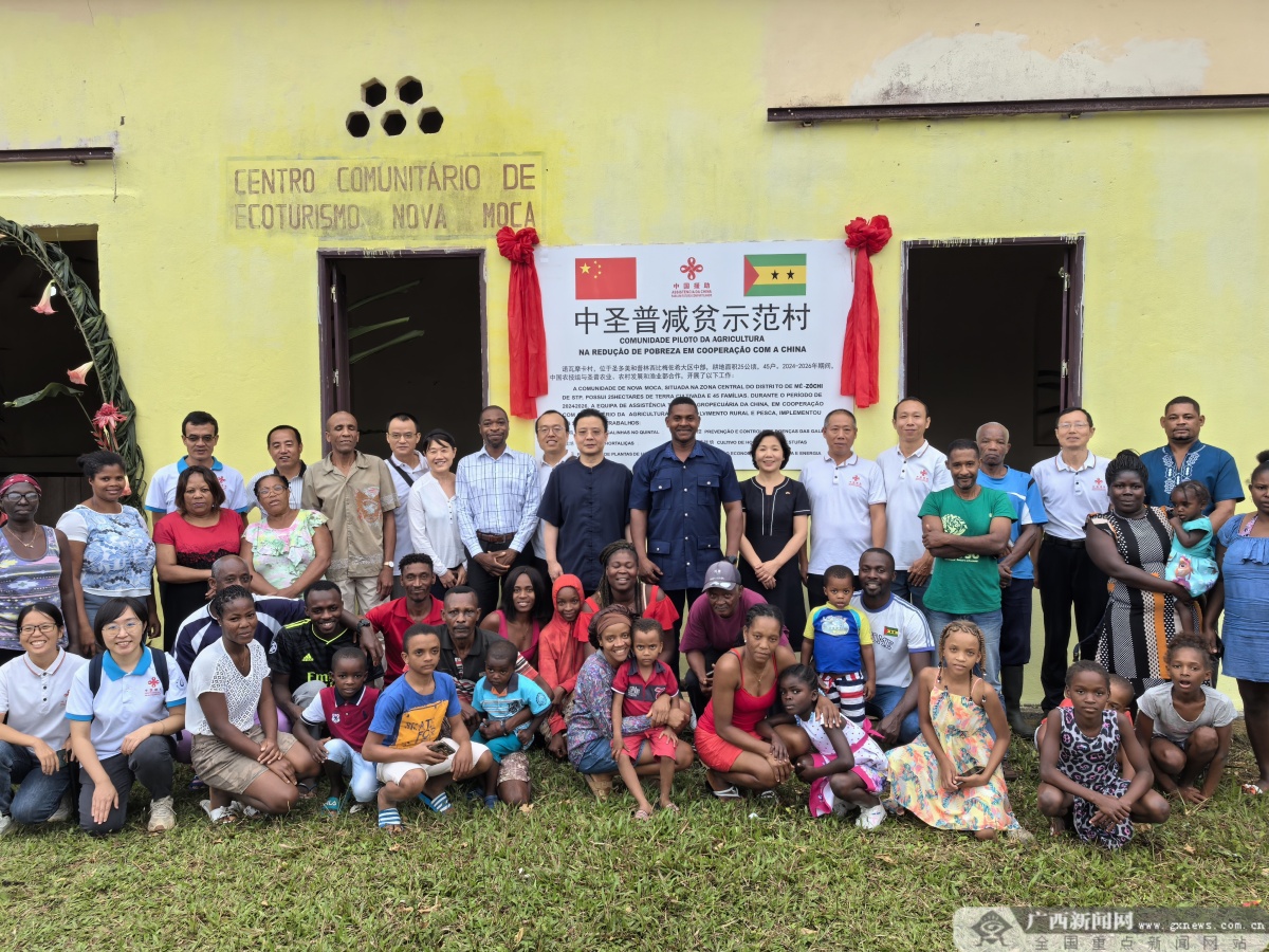 农技组与圣普农业部长和驻圣普徐迎真大使、丁恬参赞在减贫示范村揭牌仪式活动中合影。 站在“十五五”开局之年的新起点上,广西将继续在农业农村部统一部署下,把新时代中国特色大国外交理念落实到农业援外实践中,在异国土地上持续书写务实、厚重的广西答卷。 |