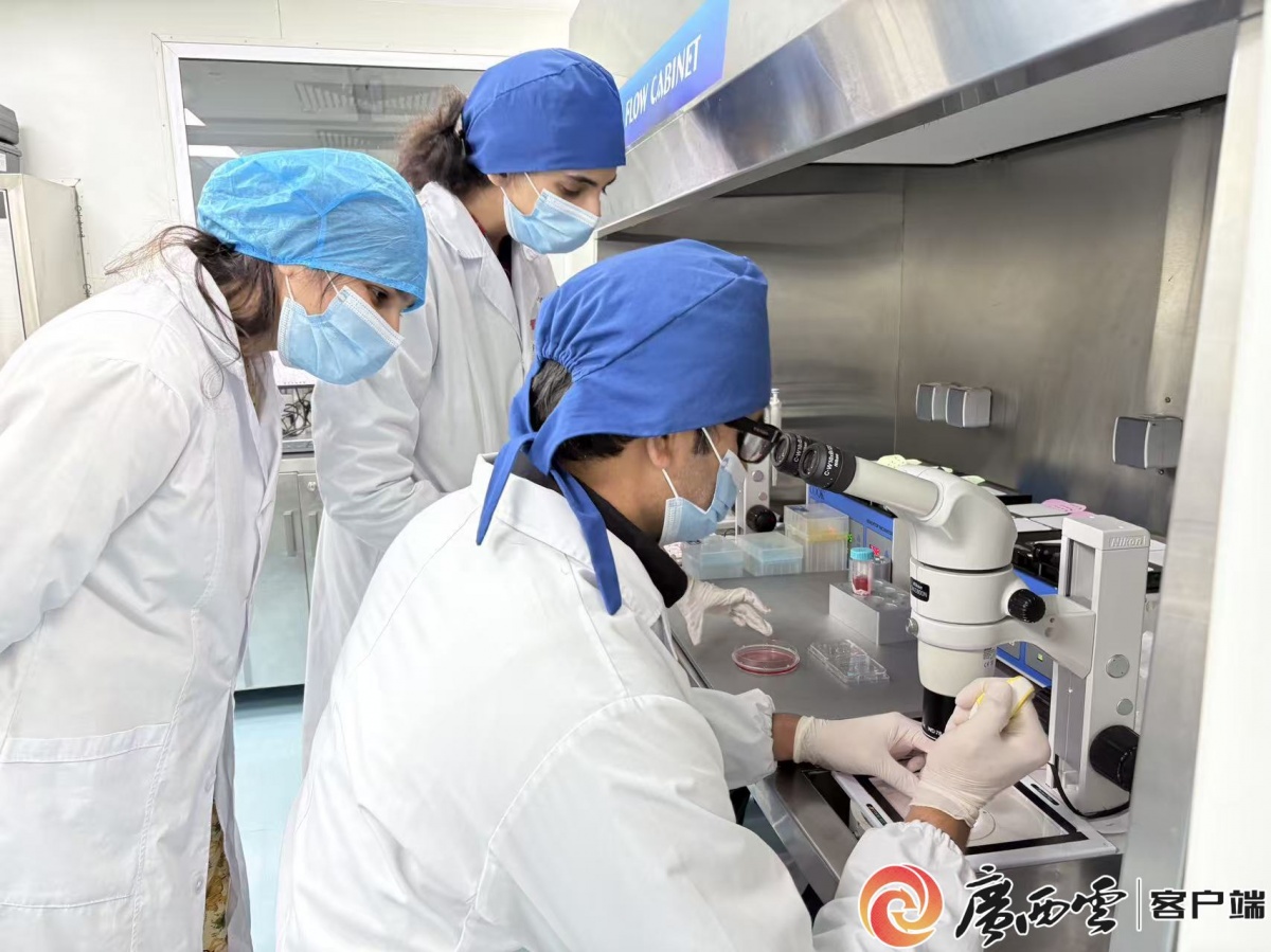 2025年广西新增18家新型研发机构。图为皇氏赛尔公司胚胎技术经理Qaisar博士在培训技术员进行胚胎培养操作。皇氏赛尔公司供图 引入“活水”,首次制定“研发贷”贴息政策,启动首期20亿元科技成果转化基金,扩大科技型企业低成本融资渠道。 破除“门槛”,创新“科创贷”和“研发贷”贴息政策,扩大“科创担”“知识产权质押担”等业务规模,给予科技型企业最高50%科技保险保费补贴。2025年,科技贷款余额6916.8亿元,同比增长10.4%,10家主体共发行106.5亿元科技创新债券;科技保险提供风险保障金额7557.7亿元,同比增长11.6%。 如今,“十五五”开局之际,站在新的起跑线,科技创新与产业创新深度融合如何继续加速发展? 自治区科技厅相关负责人表示,“十五五”期间,广西继续实施创新驱动发展战略,加快实施《广西科技创新七大行动支撑人工智能发展》《面向东盟人工智能赋能发展科技能力提升行动三年工作方案(2025—2027年)》,加强“人工智能+”应用攻关,奋力推进科技创新与产业创新深度融合,加快培育和发展新质生产力,建设高水平创新型广西。