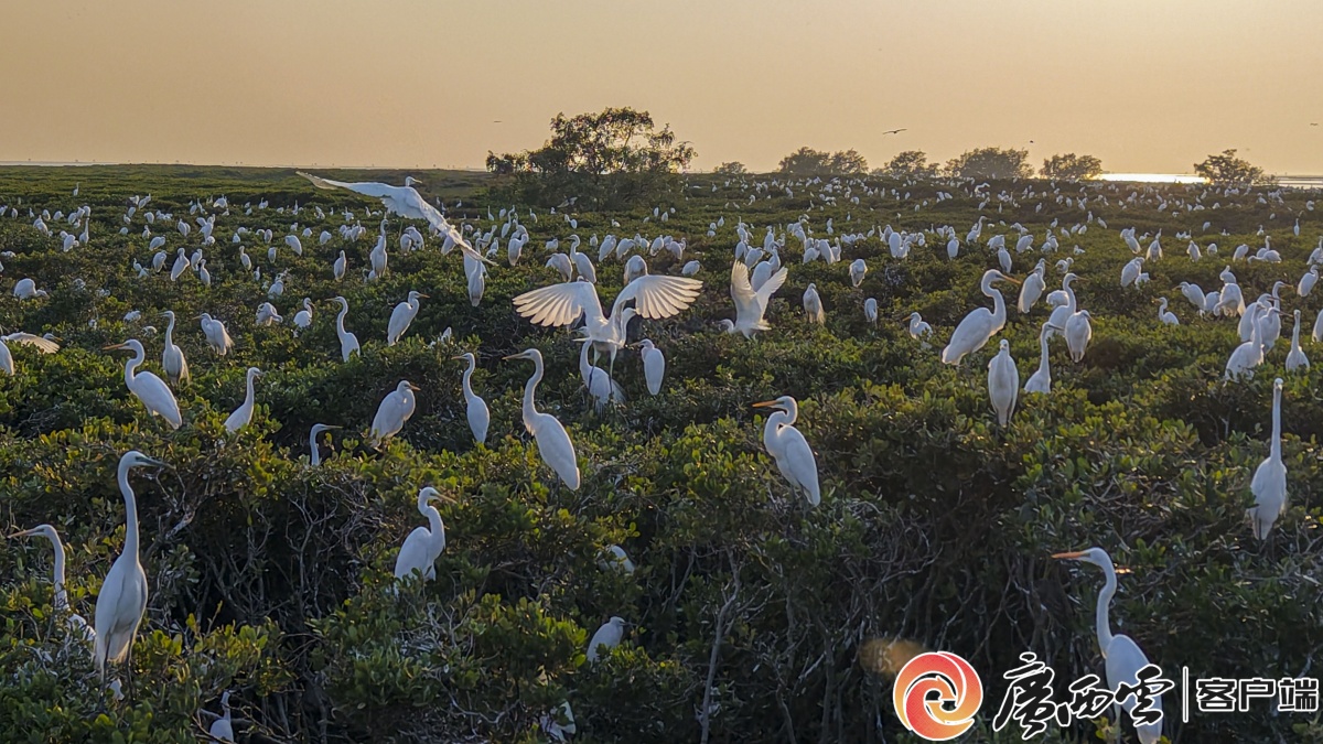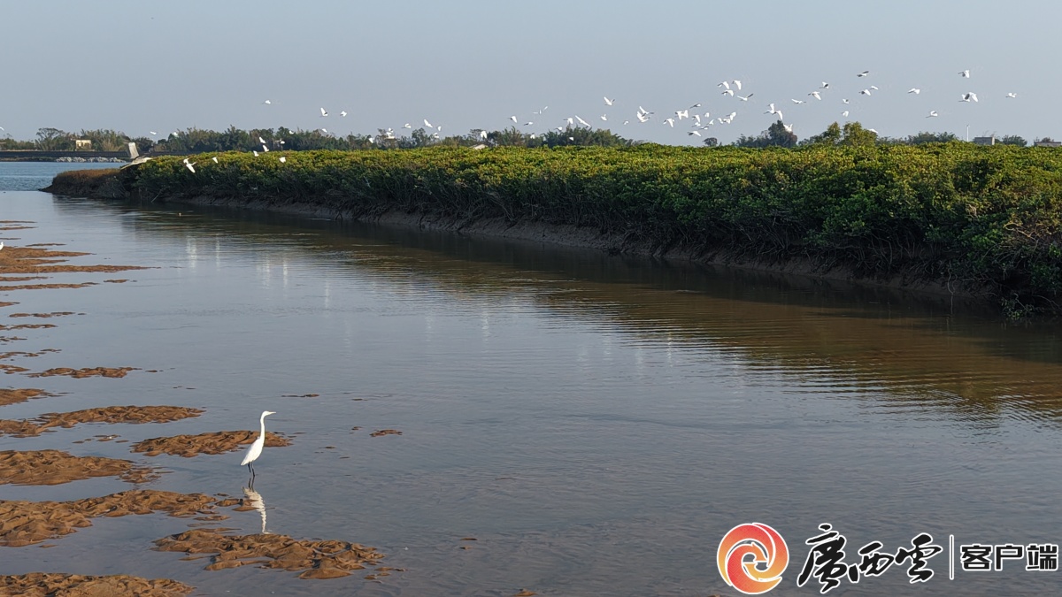 1月9日,北海市合浦县沙岗镇七星村红树林湿地迎来一年中最富生机的时节。成群的白鹭舒展着雪白的羽翼涉水觅食,反嘴鹬群在浅滩上翩跹起落,时而掠过水面,时而停栖林梢。滩涂上鸟鸣啁啾,羽影起落,与连绵的树林共同勾勒出一幅灵动的冬日生态长卷。 成群的白鹭 林启波 摄 起飞的白鹭 林启波 摄 随着气温下降,这片滨海湿地已成为众多候鸟南下越冬的重要驿站。它们在浅滩悠闲捕食、在树冠间追逐嬉戏,展现出自然生命的蓬勃活力。远处波光潋滟,近处羽翼掠影,自由生灵与湿地生态和谐相融的景象,不仅绘就了南国海岸的生态画卷,更见证着北部湾生物多样性保护的扎实成效。