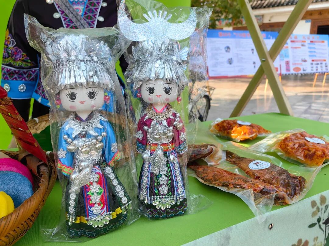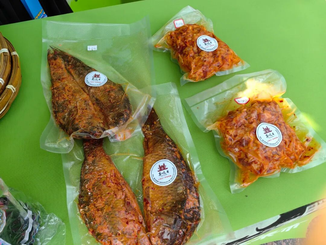 足球场外,融水名、特、优农副产品展销商贸一条街,成为另一处热闹所在。琳琅满目的商品,从融水香糯、香菇、腊鱼、腊肉、重阳酒,到苗族银饰、刺绣工艺品等,应有尽有。