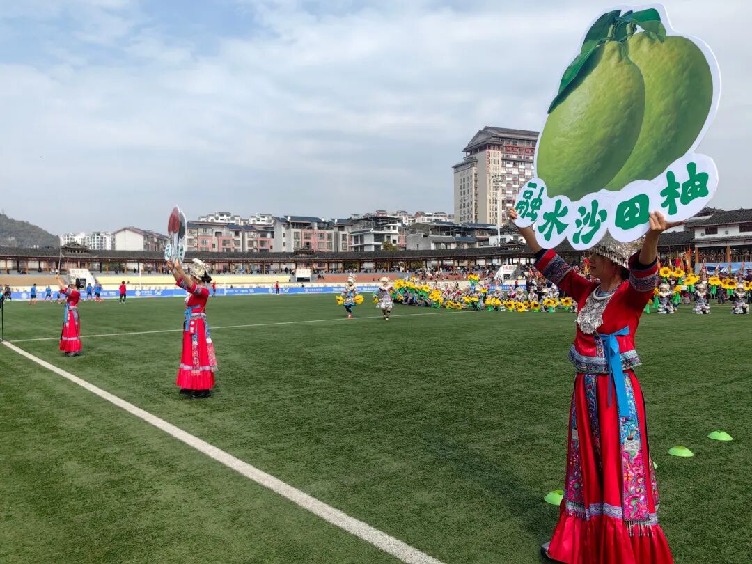记者在比赛现场观察到,主办方巧妙地将地方文化元素深度嵌入赛事各个环节。开幕式上,芦笙踩堂舞的悠扬旋律与欢快节奏,让观众在比赛开始前就感受到了浓郁的民族风情。融水队将当地特色的土产品礼盒送给对方,柳南队则回赠了体现工业设计感的汽车模型,这个交换不仅是礼节,更是两地特色的交流与展示。中场休息时,还进行舞龙舞狮表演、苗族服饰走秀等环节,将非遗文化的静态展示转化为动态体验。