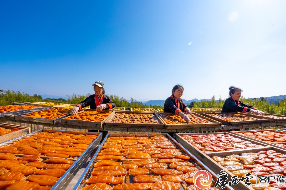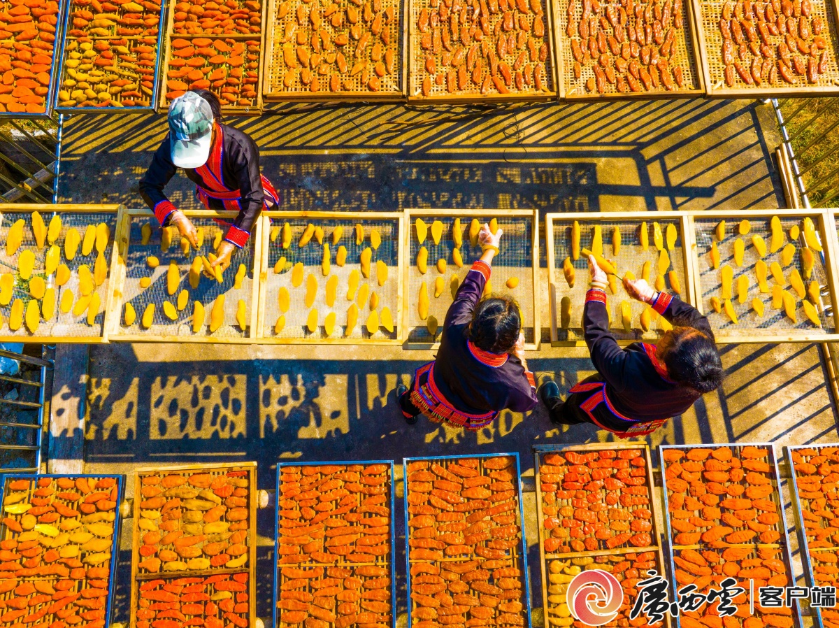 近日,正值红薯干制作的最佳时期,金秀瑶族自治县忠良乡巴勒村村民趁着晴朗的天气,加紧晾晒传统手工制作的红薯干供应年货市场。