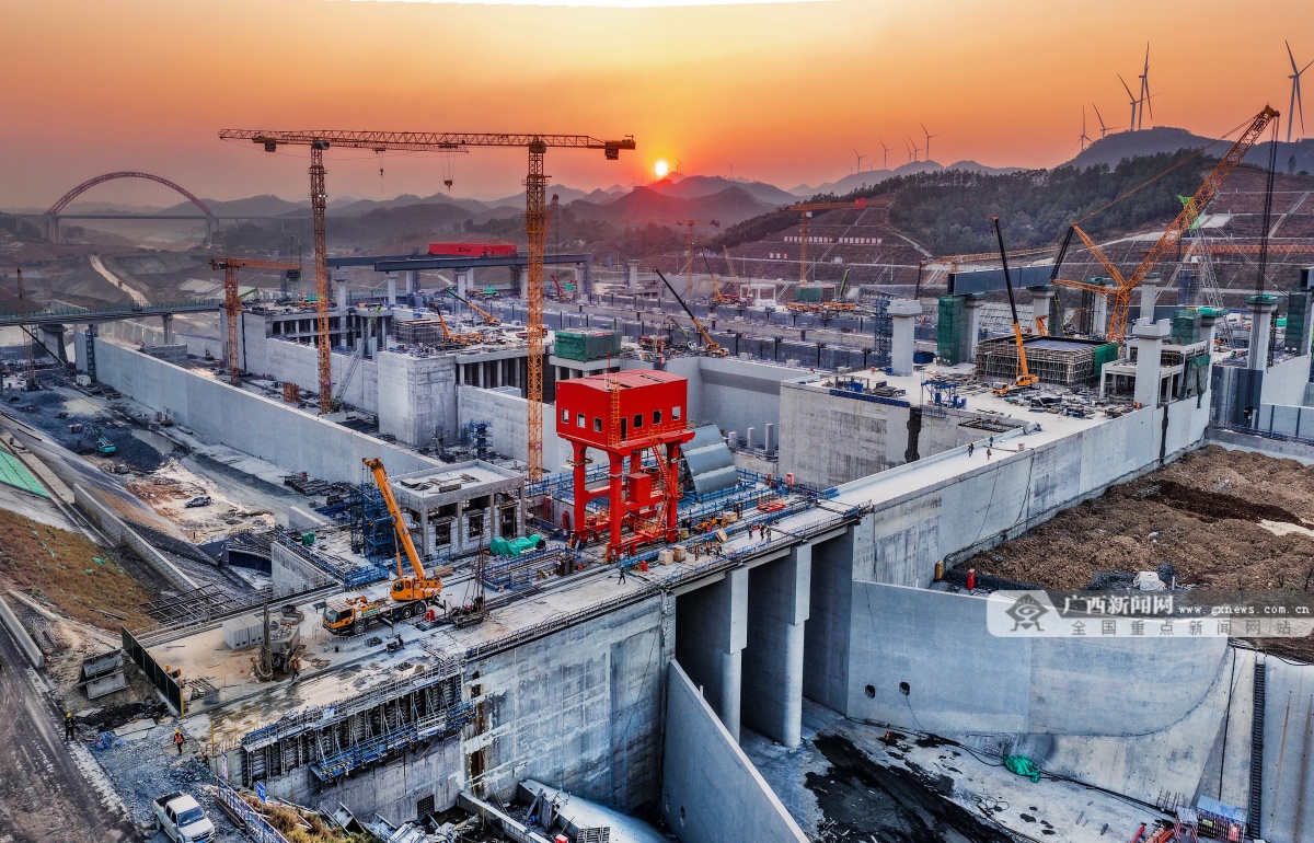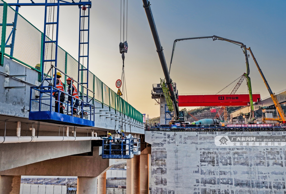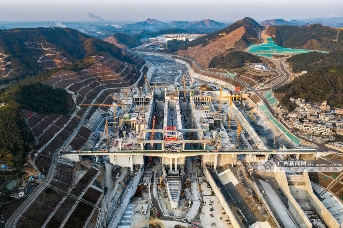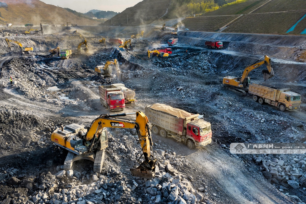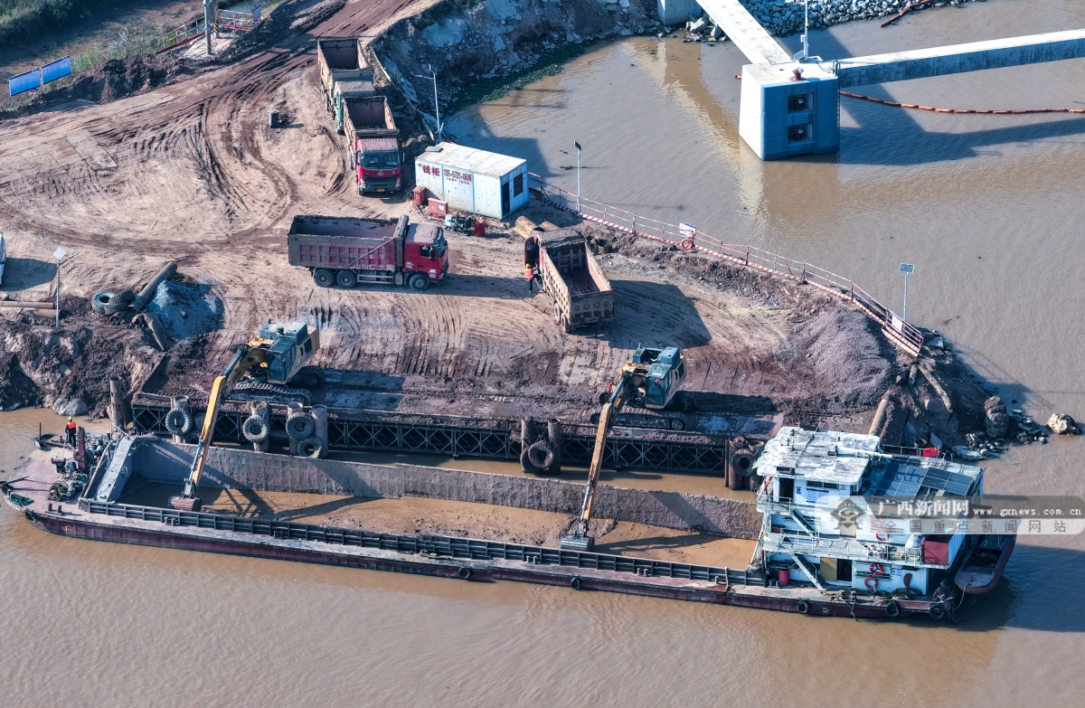 2026开年以来,广西平陆运河建设现场一片沸腾。起重机长臂挥舞,疏浚船劈波斩浪,运输车辆穿梭不息……平陆运河马道枢纽建设工地上,2000多名建设者正与时间赛跑,一股“开年即决战”的热气扑面而来。图为1月12日,建设者们在运河各个项目建设岗位上施工的情景。