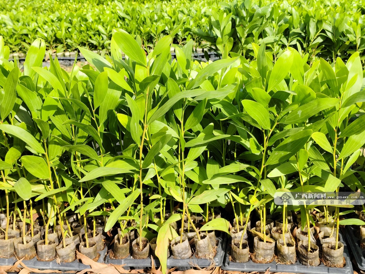香花油茶扦插苗。自治区林业局种苗站供图 2025年度林木种苗统计年报及供需分析显示,广西种苗供需呈现三大显著特点。生产供应基础愈发稳固,良种使用率稳中有升是首要特征。2025年,广西林木种子良种产量占比达28.11%,较上年提高2个百分点;良种苗木占比达51.0%,其中桉树、油茶、杉木等主要树种良种苗木占比均超80%,主要造林树种良种使用率提升至85.6%。自2022年起,穗条育苗规模逐年扩大,已成为苗木培育的主流趋势。 在保障传统树种供应的同时,广西积极推进树种结构调整,乡土珍贵树种供给能力显著增强。2025年,桉树、油茶、杉木等传统主要造林树种苗木占总产量的70%,供应充足。闽楠、黑木相思等乡土珍贵树种产苗量实现爆发式增长,其中,闽楠产苗量达942.14万株,较上年增长近2.64倍;黑木相思产苗量达951.32万株,实现翻倍增长;红锥产苗量达485.73万株,较2024年增长20.9万株。