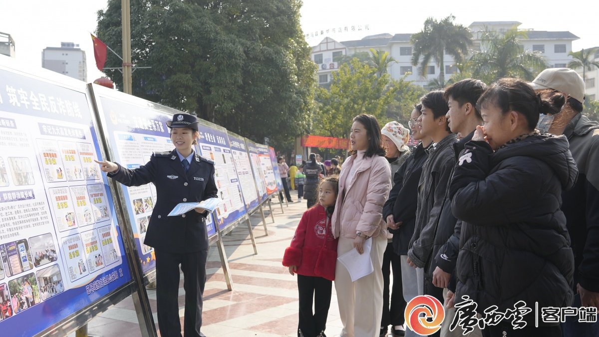 工作人员在讲解反诈内容。 巴马公安局交通管理大队副大队长黄振华表示:“我们希望通过这样面对面的交流,既帮助大家分清110的职责边界,正确、高效使用报警服务,也把最新的反诈、禁毒、交通知识送到大家手里,警民携手,共同织牢社会治安防护网。” |