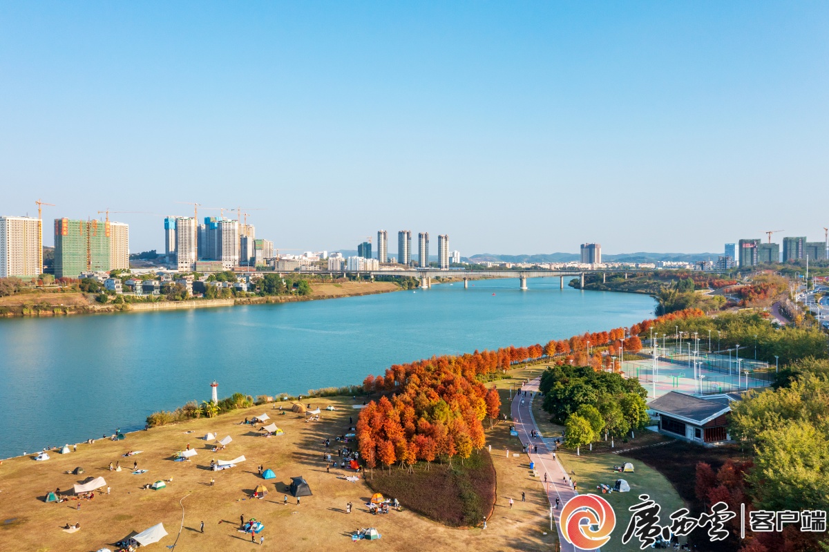 冬日的南宁灵龟山滨江公园。视觉中国供图 黎明破晓,晨光唤醒华南之巅猫儿山的雾凇世界,滔滔云海在脚下翻涌流转;南宁灵龟山公园内露营帐篷错落有致,清风拂面,鸟鸣阵阵,落羽杉的暖红与邕江的清碧互映;阳光倾洒在北海涠洲岛附近的海面,觅食嬉戏的布氏鲸搅乱了水下珊瑚碎影,水花与海鸥、观鲸游船的剪影,共同勾勒出一幅生机盎然的冬日景象……