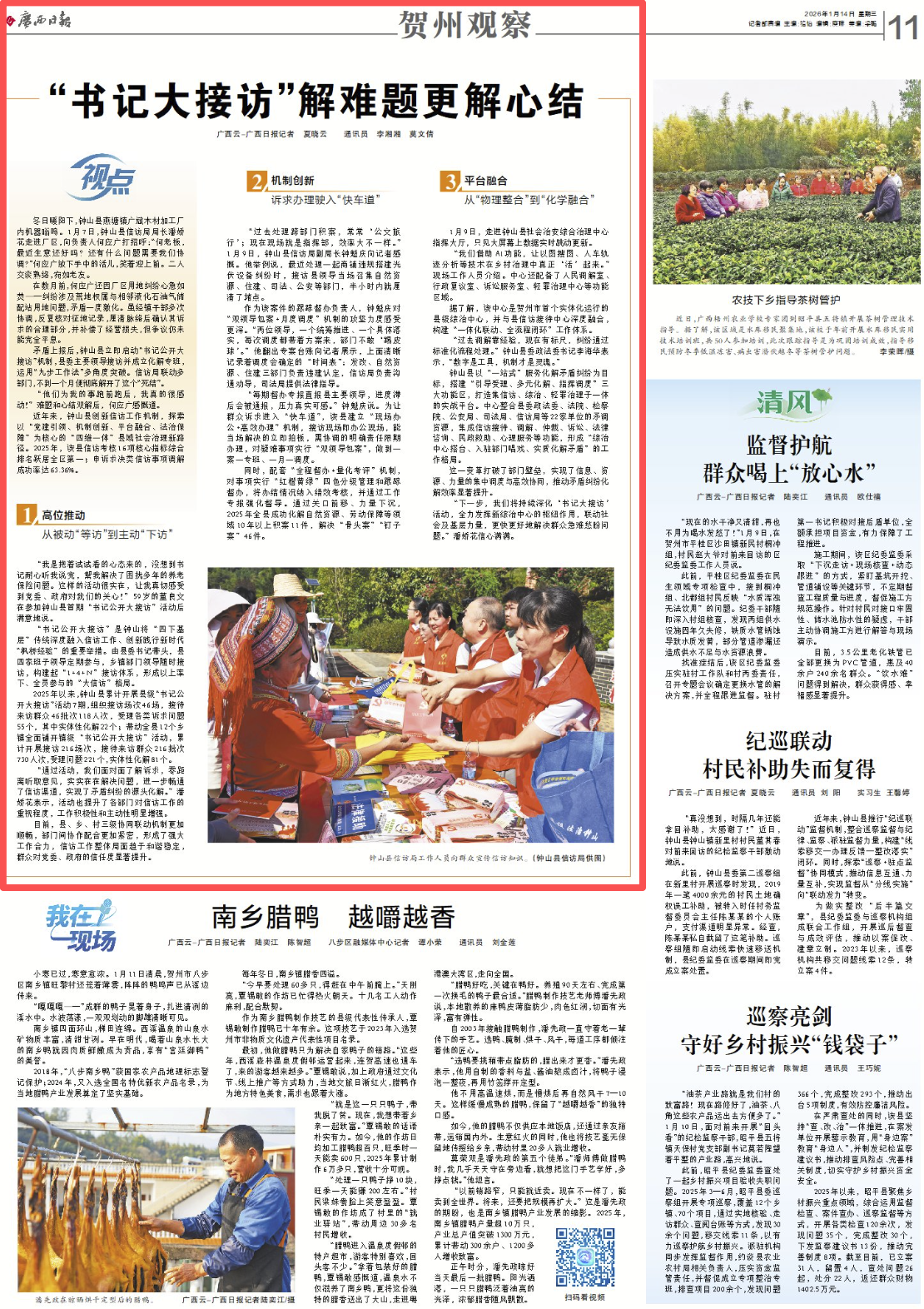 广西日报贺州头条|“书记大接访”解难题更解心结——钟山县域基层治理新路径实践观察 |