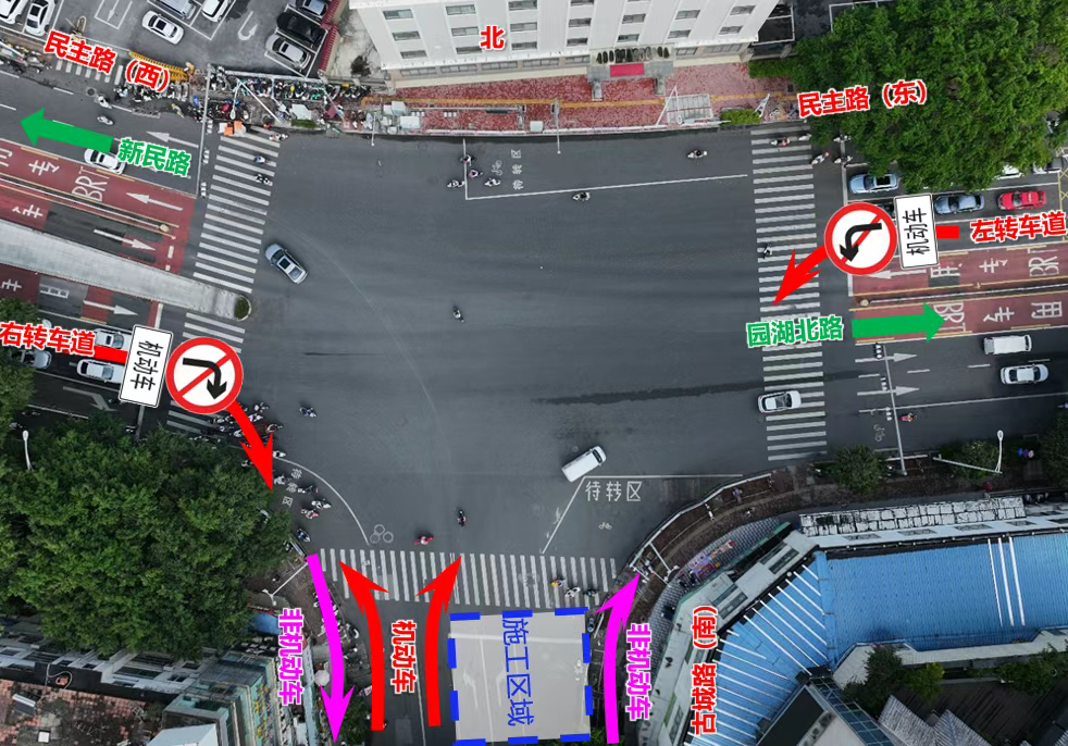 新竹路(古城路—茶花园路)施工地理位置图。 制图/盘子 北际路、边阳街 1月14日至5月4日,对北际路(雅际路—边阳新街)实行机动车单向交通组织管理,只允许机动车由北向南方向通行(雅际路往边阳新街方向),禁止由南向北方向通行(边阳新街往雅际路方向),相关车辆可绕行雅际路、义忠街、边阳新街等道路。非机动车、行人可正常通行。 1月14日至2月14日,对边阳街(边阳新街—义忠街)实行机动车单向交通组织管理,只允许机动车由北向南方向通行(边阳新街往义忠街方向),禁止由南向北方向通行(义忠街往边阳新街方向),相关车辆可绕行雅际路、义忠街、边阳新街等道路。非机动车、行人可正常通行。 北际南路、雅际路 1月14日至4月27日,对北际南路(雅际路—北际路)实行机动车单向交通组织管理,只允许机动车由东向西方向通行(北际路往雅际路方向),禁止由西向东方向通行(雅际路往北际路方向),相关车辆可绕行北际路、雅际路、北际路南一巷等道路。非机动车、行人可正常通行。 5月5日至7月7日,对雅际路(北际南路—边阳四街)实行机动车单向交通组织管理,只允许机动车由南向北方向通行(边阳四街往北际南路方向),禁止由北向南方向通行(北际南路往边阳四街方向),相关车辆可绕行北际路、北际南路、边阳新街、义忠街等道路。非机动车、行人可正常通行。 南铁四街 1月14日至2月14日,对南铁四街(南铁一街—秀灵路)实行单向交通组织管理,只允许机动车由西往东方向通行(南铁一街往秀灵路方向),禁止由东往西方向通行(秀灵路往南铁一街方向),相关车辆可绕行秀灵路、衡阳西路、南铁一街、南铁五街、南铁六街等周边道路。非机动车和行人可正常通行。 2月15日零时起至4月20日24时止,对南铁四街(南铁二街至南铁一街)进行围挡施工。施工期间禁止机动车通行,非机动车可通过预留便道通行,行人可正常通行。相关车辆可绕行衡阳西路、沈阳路、南铁一街、南铁六街等周边道路。 南宁交警提醒,道路施工期间,请途经相关路段的车辆提前规划好行车路线,以上采取的限制交通措施因工程作业进度改变的,以现场设置的交通标志等交通设施引导为准。 |