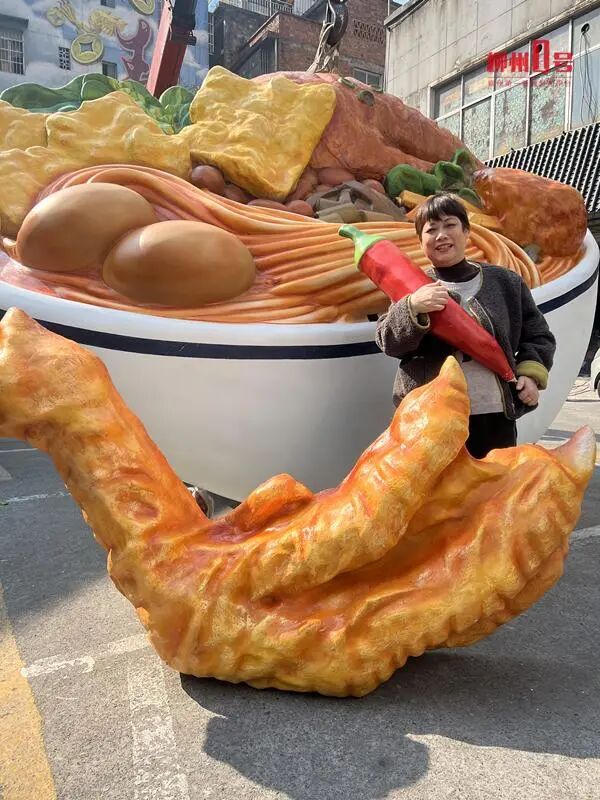 直径4.2米!巨型“螺蛳粉”空降柳州青云菜市!加的“鸭脚”比人还高 |