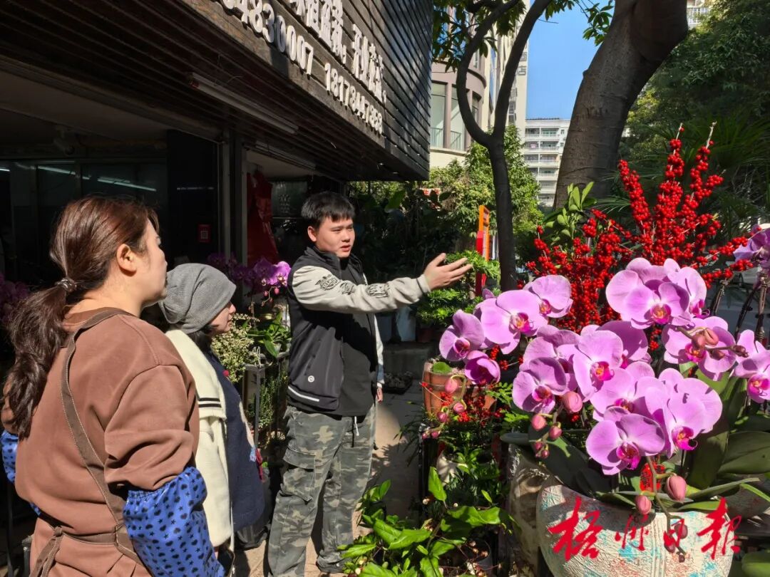 在长洲区一家花店,店主为顾客介绍花卉款式,店内的蝴蝶兰、百合竹等花卉绿植摆放整齐,年味十足。 记者 覃蛟龙 摄 长洲区一家花店内,蝴蝶兰、黑金刚、百合竹等花卉绿植摆放得错落有致,商户秦女士正忙着给顾客打包花礼。“我们提前一个月就备货了,近期每天开门后都忙个不停,进店客流较平时大幅增加。”她表示,目前蝴蝶兰、黑金刚等品种走俏,近期仍会持续补货保障供应。 一盆盆鲜花绿植,一个个忙碌身影,酿足新春年味。花卉市场的全力备花,既保障了市民购花需求,也让梧州的年味越来越浓。 |