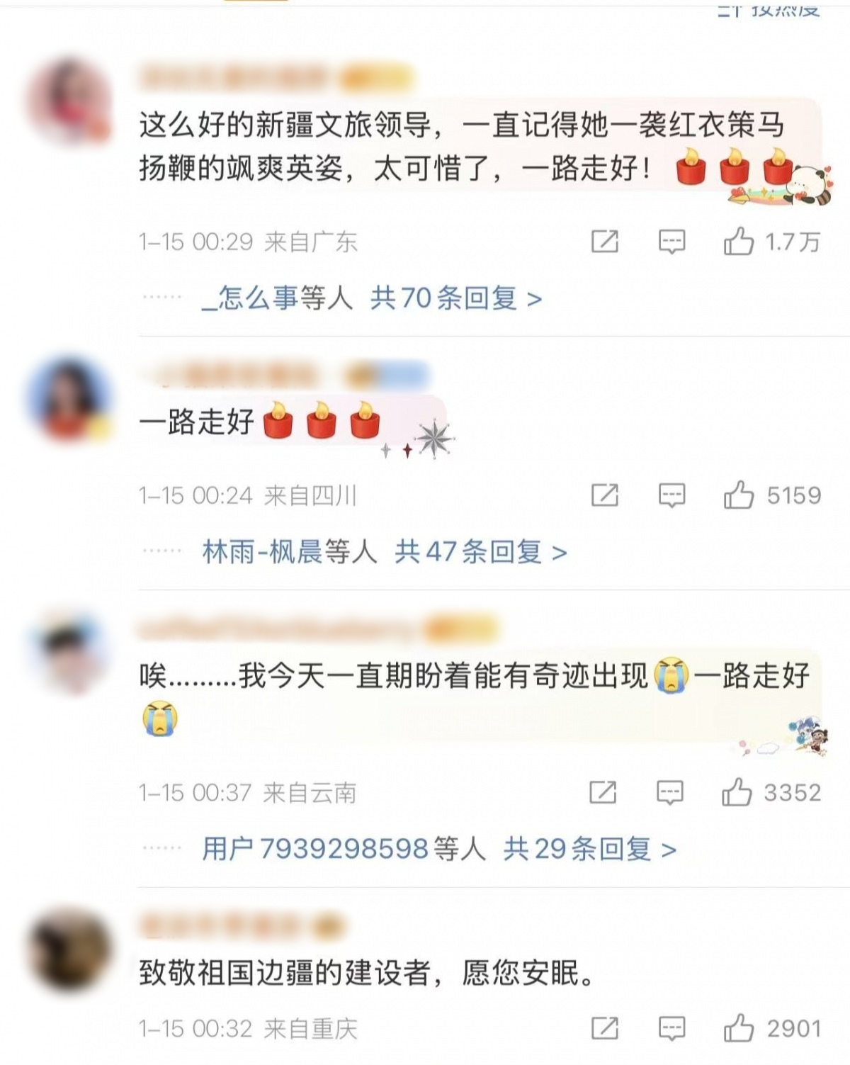 在另一片雪原 她依然鲜衣怒马 那个一袭红衣策马雪原的女侠,永远留在了这个冬天!新疆日报在悼念文章中表达了对贺娇龙的深深思念: 作为文旅官员“初代网红”,贺娇龙的意义远不止于“走红”。她以务实创新的勇气,解锁了新时代干部的全新形象——接地气、有温度、敢创新,也因此被网友亲切称为“别人家的副县长”,更成为官员运用互联网思维推介地方、服务发展的典范。 贺娇龙不仅是一道风景,更是一扇让更多人了解新疆的窗口。“在欠发达地区,文旅局长带头走上台前,是最经济实惠的宣传方式”,她曾在采访中直言,不用明星代言,只用身边人、身边事,才能让新疆的美更真实可感。没有刻板的官气,没有华丽的语言,她用最本真的姿态,兑现了“宣传新疆,我永远都会全力以赴”的诺言。 我们缅怀贺娇龙,是缅怀一种敢于创新的开拓精神,是缅怀一份扎根泥土的为民情怀,更是缅怀那个永远活力满满、将热爱进行到底的鲜活生命。 贺娇龙的离去,不仅是新疆文旅的损失,也是新疆大地的遗憾。她让外界看到了一个既壮美辽阔又生动鲜活、既传统厚重又充满现代活力的新疆。我们相信,她用行动诠释的“为热爱所向披靡”,会在更多人心中生长、延续。也会有越来越多的人,为她讲述过的草原雪山而来,以她展现过的视角而爱上新疆,还会有更多人,接过她未尽的故事,继续向世界讲述这片土地的精彩。 昔人已逝,大雪无痕。昭苏草原绿了又黄,伊犁河水奔流不息,神骏天马依旧驰骋。只是,那个最夺目的红衣女侠,已悄然隐入天际。 |
