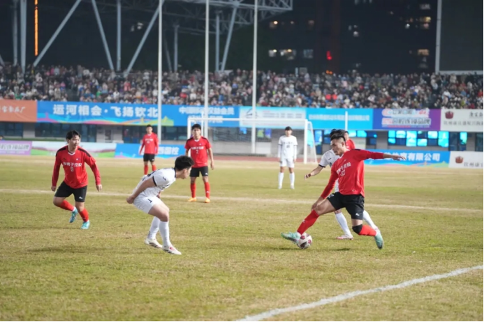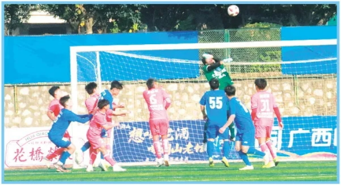 桂南赛区:钦州市钦北区队4∶1崇左凭祥市队 钦北区队主场作战占据天时地利人和,在1.6万名球迷的助威声中,开场便掌控场上节奏。11分钟,曹俊韩接左路传中头槌冲顶破门,为球队首开纪录;14分钟后,他又在禁区内接队友倒三角传球巧射破门梅开二度,点燃现场球迷热情。38分钟,邓朝文轰出一记头球吊射世界波,将比分扩大为3∶0。55分钟,黄振钦利用禁区内混乱推射得分,进一步巩固优势。凭祥市队在78分钟由陈雨阳半凌空抽射扳回1球,但未能改变比赛走势,最终钦州市钦北区队4∶1击败崇左凭祥市队,取得开门红。