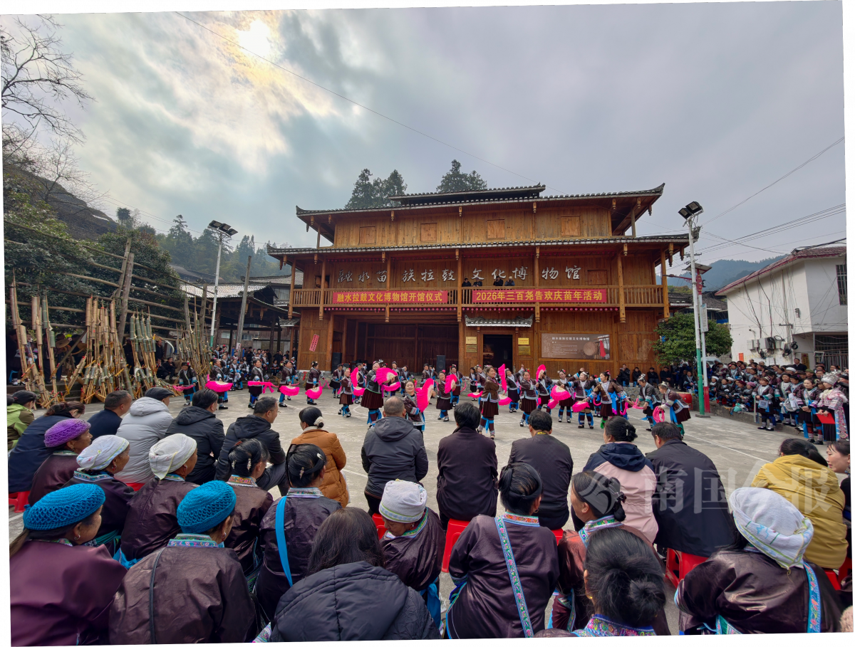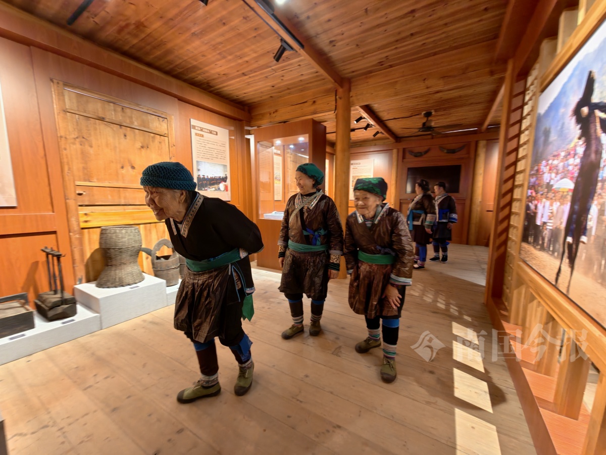 大家一起载歌载舞。梁强 摄 在柳州市文化广电和旅游局的帮助下,尧告村民积极参与乡村文化保护和博物馆建设。三百尧告苗寨近5000村民人人参与苗族拉鼓非遗活化传承,家家户户都支持博物馆建设。馆内陈列的500多件藏品,绝大部分是村民无偿捐赠。