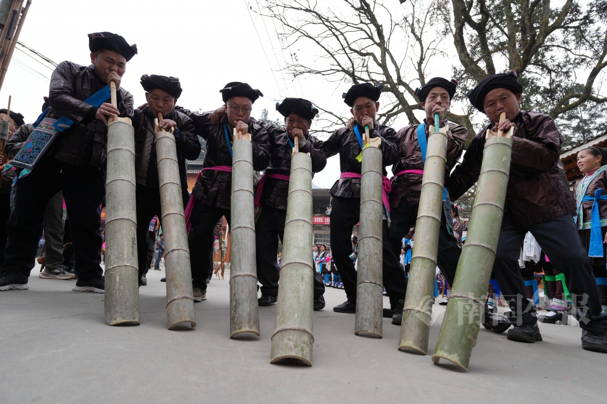 活动现场。梁强 摄 拉鼓,是苗族同胞祭祀祖先、庆祝丰收、凝聚人心的神圣图腾,更是民族精神生生不息的象征。 “三百尧告苗族拉鼓节”已经流传400余年,是目前广西境内仅存的苗族拉鼓文化遗产,“苗族拉鼓习俗”2018年列入广西壮族自治区非遗项目名录。 当地群众一直希望建设一座拉鼓文化博物馆,将苗族拉鼓习俗代代传承下去,让更多游客和外地朋友能够通过博物馆认识了解融水苗族拉鼓文化。 芦笙比响。梁强 摄