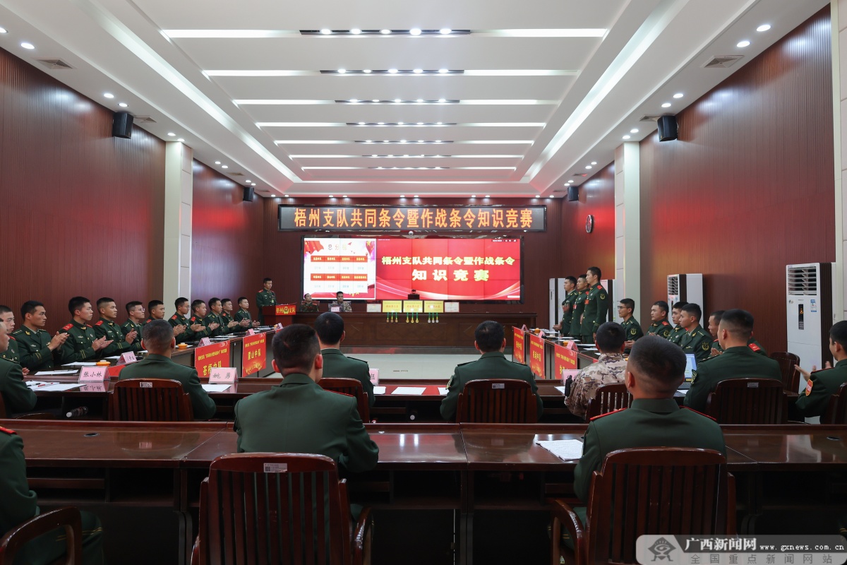 活动现场。通讯员 柯江涛 摄 广西新闻网梧州1月16日讯(通讯员 黄保超 朱辉煌 柯江涛 江怀鹏)为树立“开局即严、起步即实”的鲜明导向,进一步增强官兵学条令、知条令、守条令的行动自觉,近日,武警广西总队梧州支队组织开展了条令知识竞赛,来自各基层单位的多支代表队同台竞技,围绕共同条令暨作战条令相关知识展开比拼。 本次竞赛设置个人必答题、小组必答题、小组抢答题、小组风险题和加赛决胜题五个环节,内容丰富,题型多样,考点密集,既检验选手对条令知识的熟练掌握程度,更考验对制度规范的精准理解。为确保竞赛结果真实可信,还设置了监督席、仲裁席、计分席。工作人员紧盯抢答器使用、主持评判、计分统计等关键环节,对竞赛流程进行实时监督,对现场出现的疑问及时核查、公正裁决。“我们的职责就是守住公平底线,让竞赛真正成为检验学习成效的平台,让官兵在公平竞争中感受到条令的严肃性和规范性。”风气监督员满文富表示。 在必答题环节,选手万鹏川因答题顺序出现偏差,即便核心知识点正确,仍被仲裁席当场扣分。“顺序错乱看似是小失误,实则反映出对条令制度的掌握不够扎实。条令执行容不得半点马虎,一字一句、一举一动都必须精准规范。”仲裁人员的点评让现场官兵深受触动。全程透明、严谨规范的竞赛组织,也赢得了各参赛单位和现场官兵的一致认可。 “请听题!根据《中国人民解放军共同条令》,部队一日生活制度有哪些?请抢答!”竞赛现场,主持人话音刚落,各代表队选手便迅速按下抢答器,眼神专注、应答果断。五号参赛单位凭借手速连抢五题,将比分逐渐拉开。风险题环节更是将氛围推向高潮,各代表队沉着研判、大胆作答,有的凭借扎实积累斩获高分,有的虽挑战失利却毫不气馁,展现出顽强的竞技精神和良好的学习风貌。经过一番精彩角逐,最终三个单位脱颖而出,分别获得团体第一、第二、第三名的好成绩。 一场竞赛,点燃了官兵的学习热情。此次条令知识竞赛不仅为各单位搭建了交流学习、比拼竞技的平台,更让“条令就是准则、执行必须严格”的理念深入人心。“以前觉得条令学习有些枯燥,通过这次竞赛,我深刻认识到条令知识的重要性,也找到了学习的乐趣。今后我会把条令要求融入日常工作生活,做到学用结合、知行合一。”战士李耀的感悟道出了官兵的心声。 据悉,该支队将以此次竞赛为起点,建立条令学习常态化机制,通过定期考核、日常督查等方式,推动条令学习走深走实,切实把学习成果转化为规范日常养成、提升战斗力的实际成效,为部队全面建设高质量发展筑牢制度根基。 |