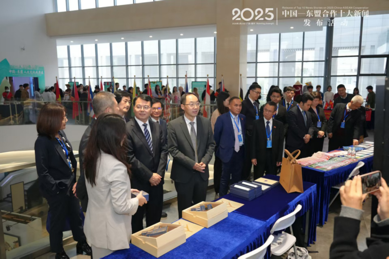 发布仪式现场。 活动现场公布了“2025年中国—东盟合作十大新闻”评选结果。此次入选的十大新闻涵盖元首外交、经贸升级、数字转型、绿色发展、人文互动与非传统安全合作等多个维度,体现了双方关系的全面性与韧性,凝聚了未来合作共识。专家们认为,中国—东盟合作历经35年发展,已进入深化融合、战略升级的关键阶段,尽管国际形势复杂严峻,但中国与东盟的合作根基牢固、前景广阔。2025年是中国—东盟人文交流年,双方以此为契机,在人文领域取得了丰硕成果,为促进民心相通奠定了坚实基础。