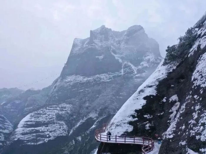 图/黄祥志 摄 小贴士 【交通】 1.桂林自驾出发:泉南高速-呼北高速-隘门界。 2.资源县城自驾出发:导航“隘门界隧道”即可,车程约30分钟。 3.没有直达公交,建议在资源县城约车出发。 【收费标准】无需门票。 【注意事项】 1.车辆建议统一停放在山下,雪天路面积雪容易打滑,且赏雪时车辆较多,容易堵车,请注意安全,听从交警指挥。 2.车辆停好后,可从隘门界隧道左边隧道徒步上山,行程约40分钟。 桂林丹霞·八角寨——丹霞与冰雪的奇幻交融